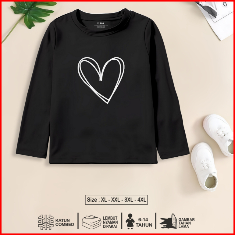 Kaos Panjang Anak Perempuan 6-14 Tahun Kaos Anak Perempuan Lengan Panjang Kaos Anak Premium Love