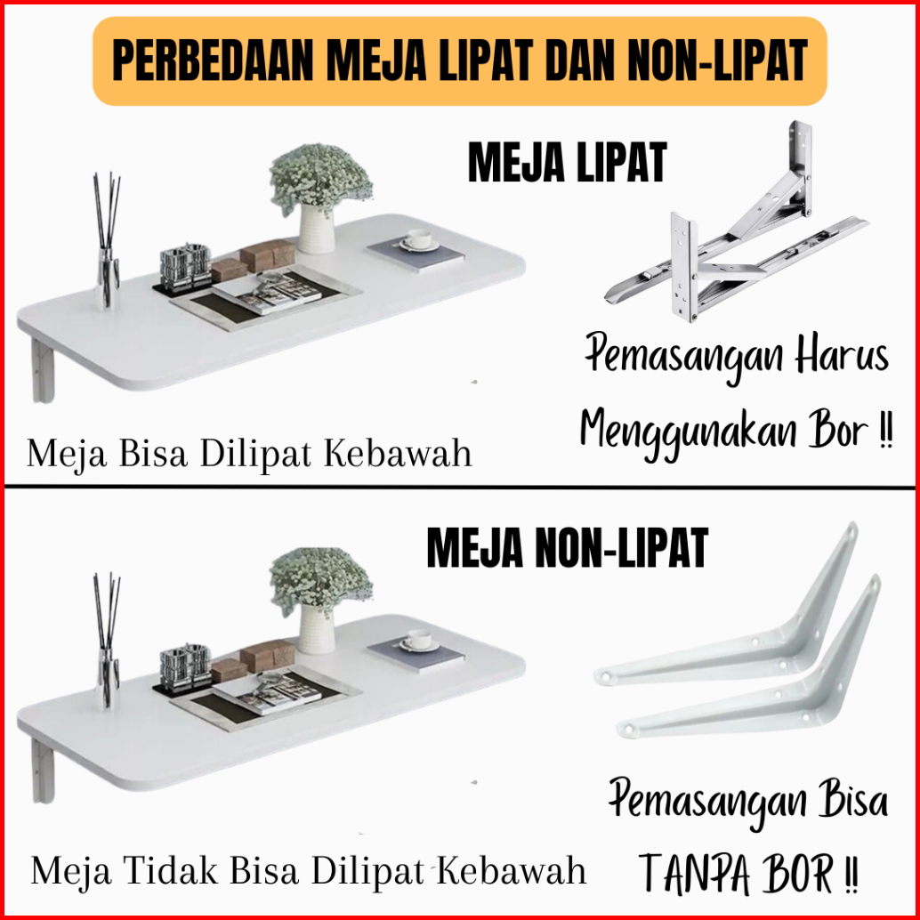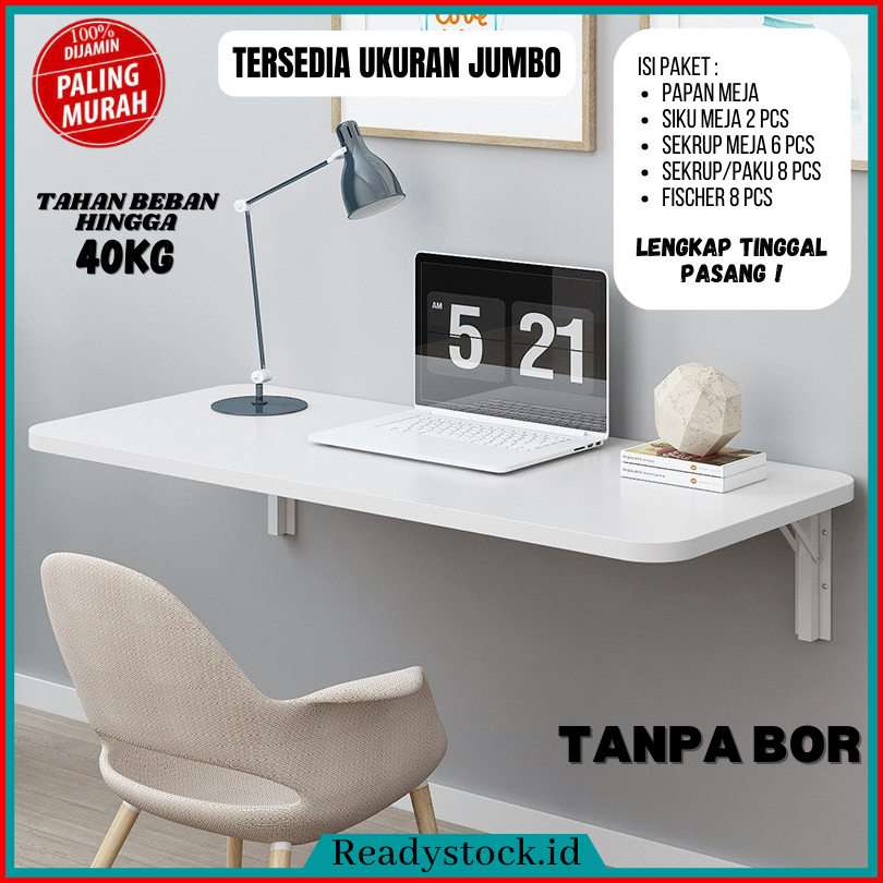 Readystock.id Meja Lipat Dinding Tanpa Bor Minimalis Serbaguna - Ukuran 120x40 100x40 80x60 80x50 80x40 60x40 60x30 60x2