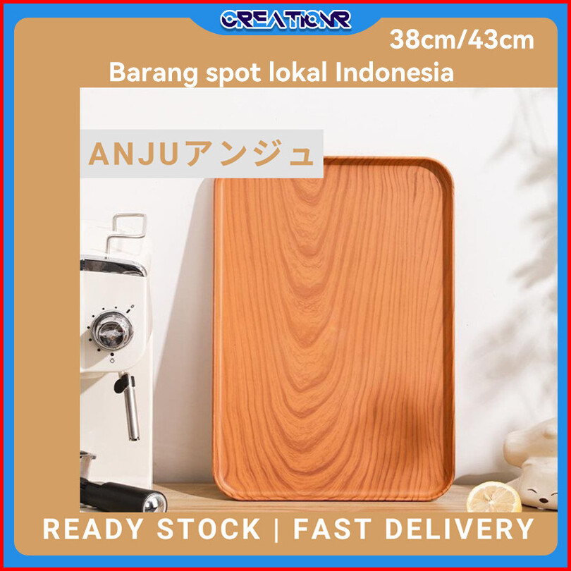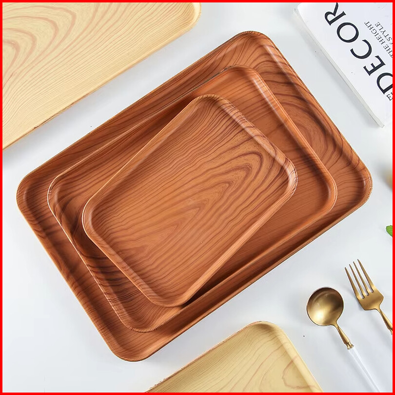 Nampan Kayu Aesthetic - Baki Saji Motif Kayu Natural Food Grade Untuk Cafe Restoran Meja Tamu Desain Minimalis Anti Gore