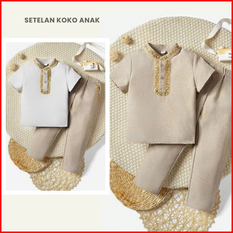 Baju Koko Bayi 0-24 Bulan Setelan Koko Anak Laki-laki Motif Polos Variasi Didada