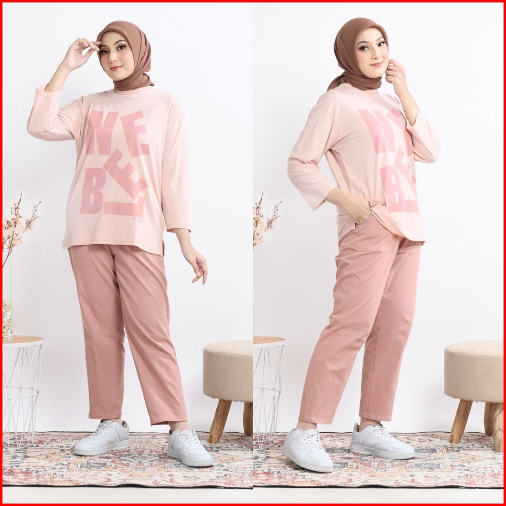 Nuna Set Celana One Set Viral Stelan Celana Wanita Kekinian Atasan Kaos Terbaru Best Seller