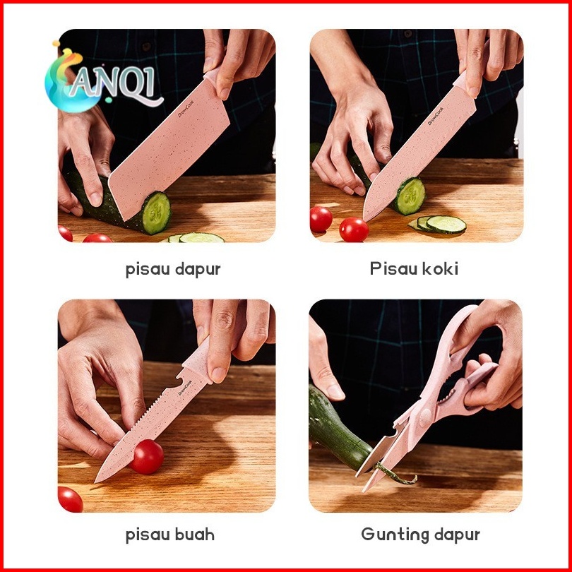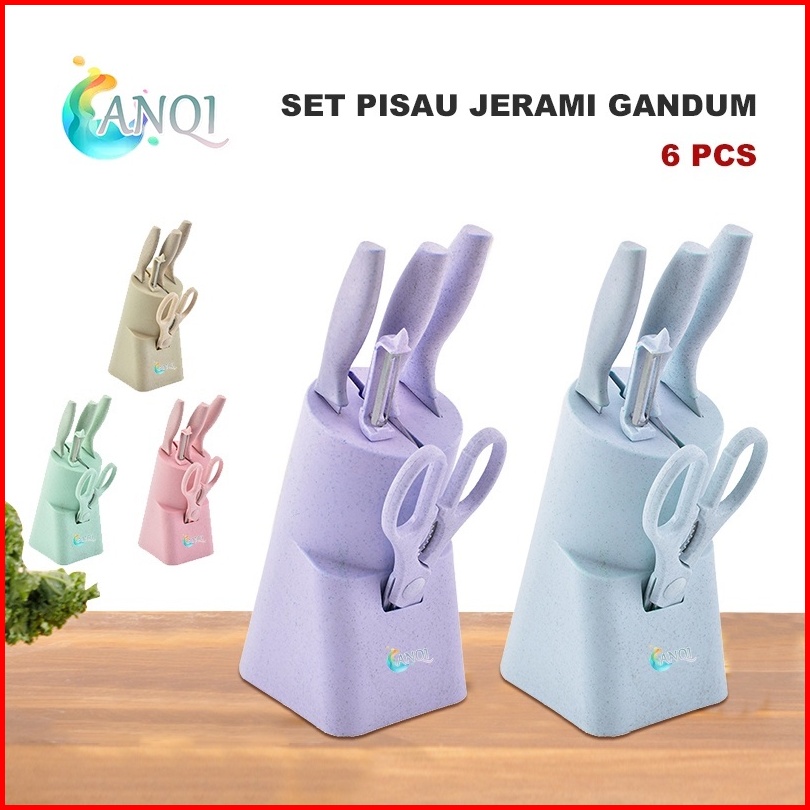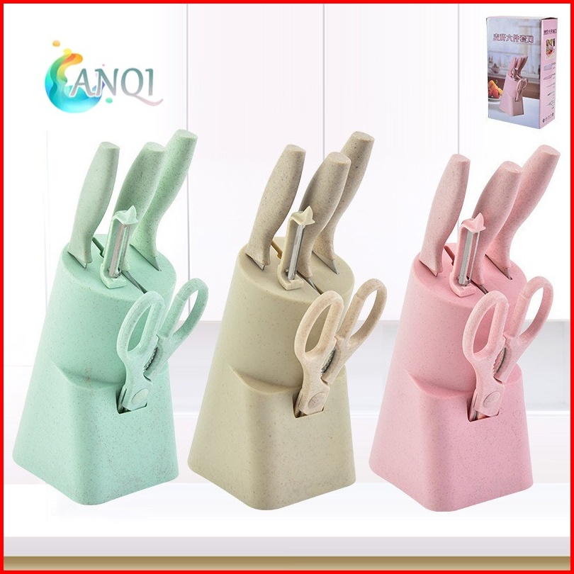 Pisau Set 6 In 1 Knife Set 6 In 1 Dengan Wadah Pisau Jerami Gandum Berkualitas