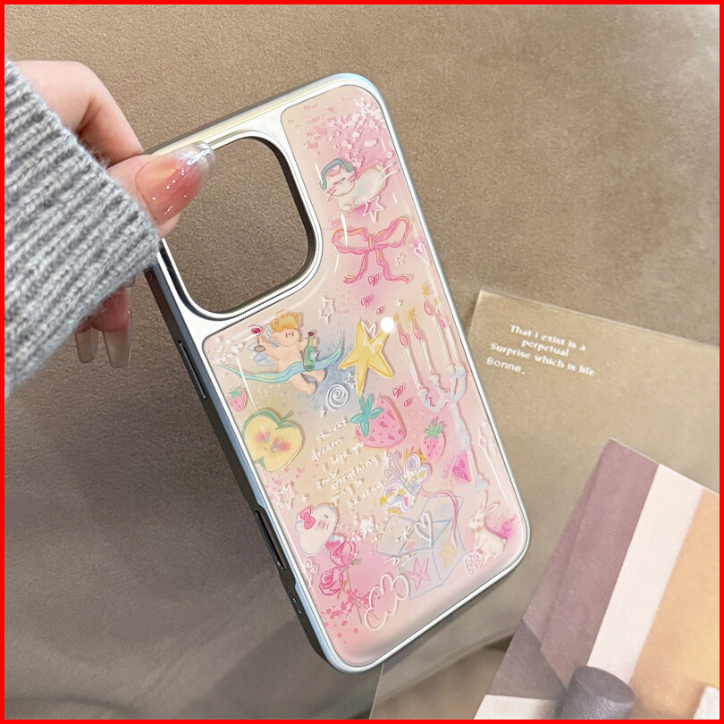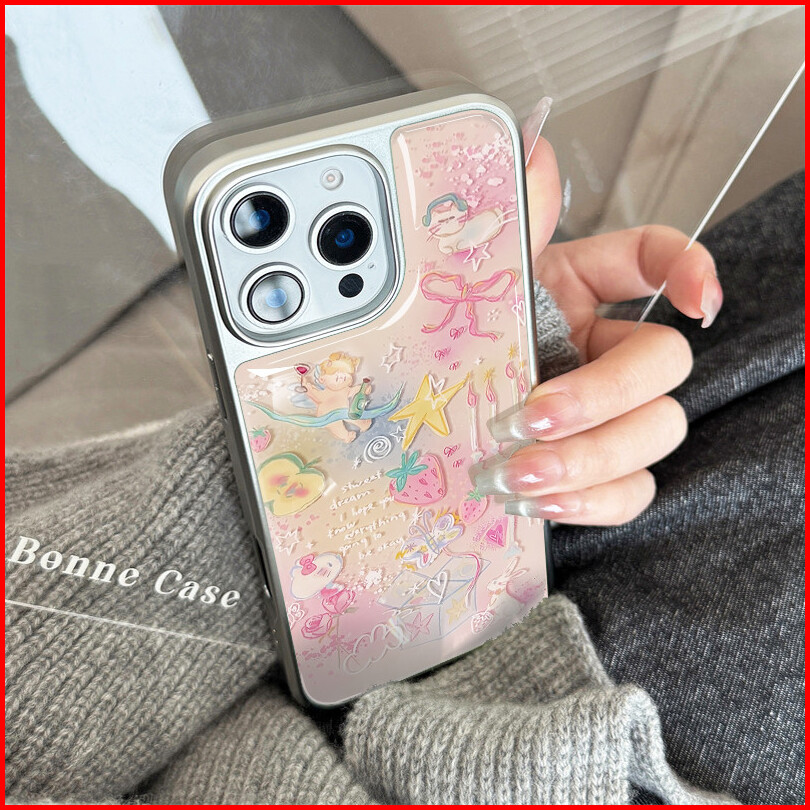 Case For Iphone Xr 11 12 13 14 15 16 Pro Max Plus Back Cover Pink Patterns Tpu Case Handphone Casing Snk
