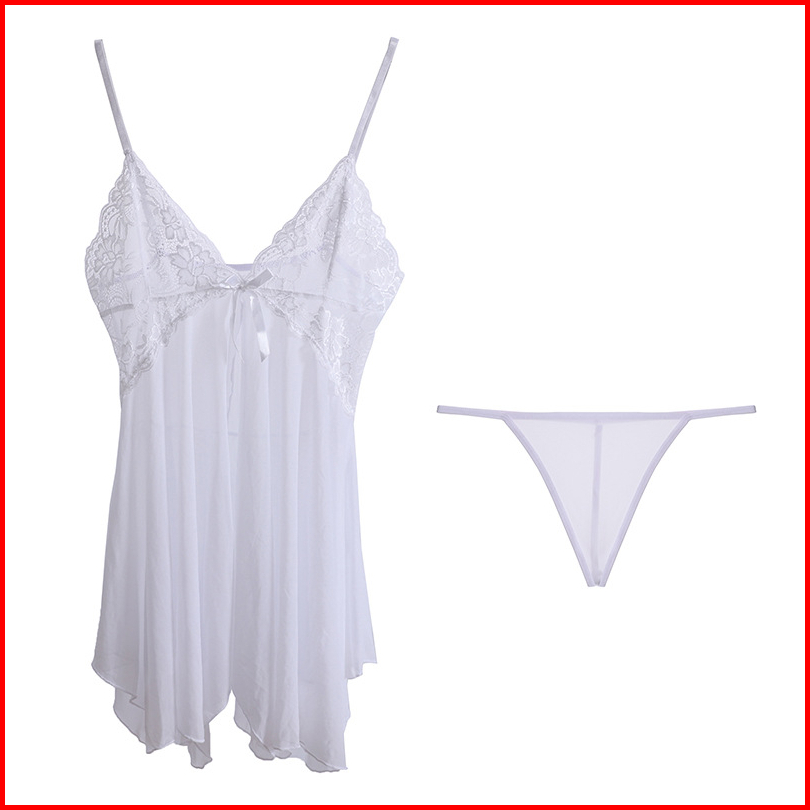 Yooyi Baju Tidur Wanita V-neck Model Renda Sera Mesh Eksotis Bra Set Korea Dress Sexy Lace Mesh Babydoll Women Silk Sati