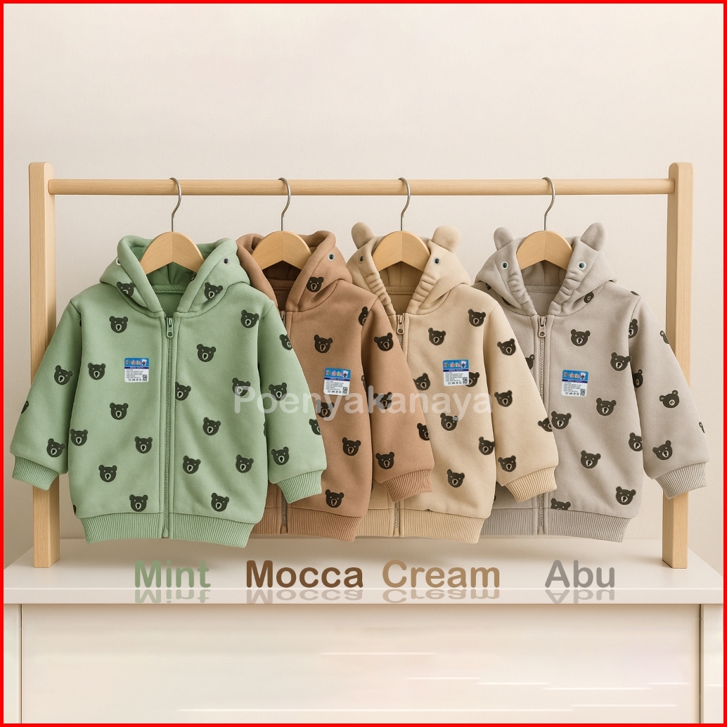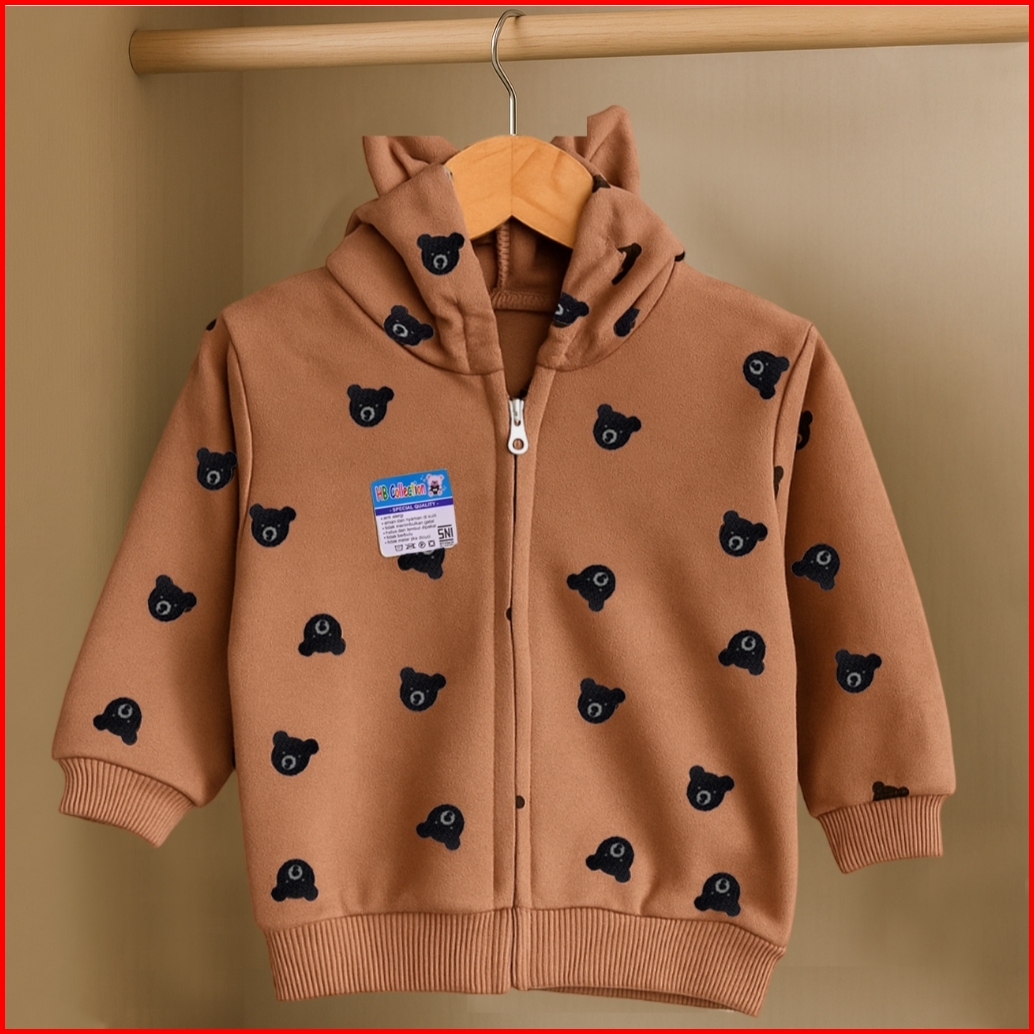 Jaket Bayi Anak Fleece Resleting Kupluk Kepala Panda Hbc Sni Size 3-12 Bulan Jk02