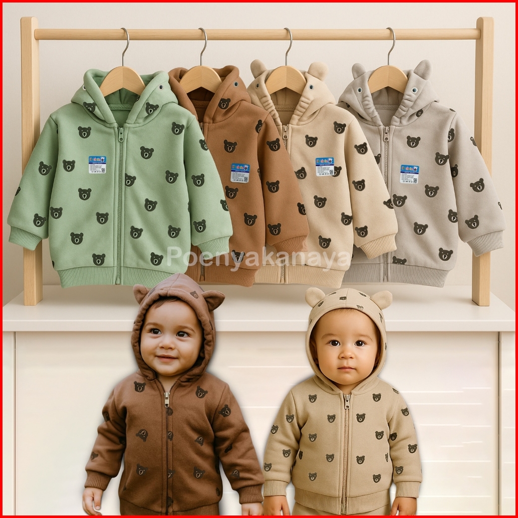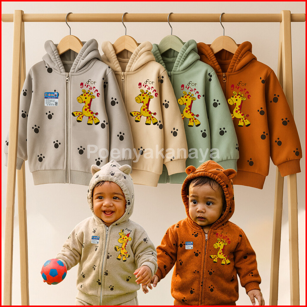 New Jaket Bayi Anak Fleece Resleting Kupluk For Giraffe Size 3-12 Bulan Hbc Sni Jk07
