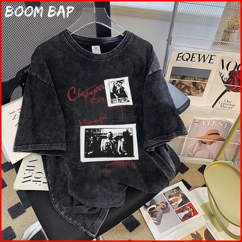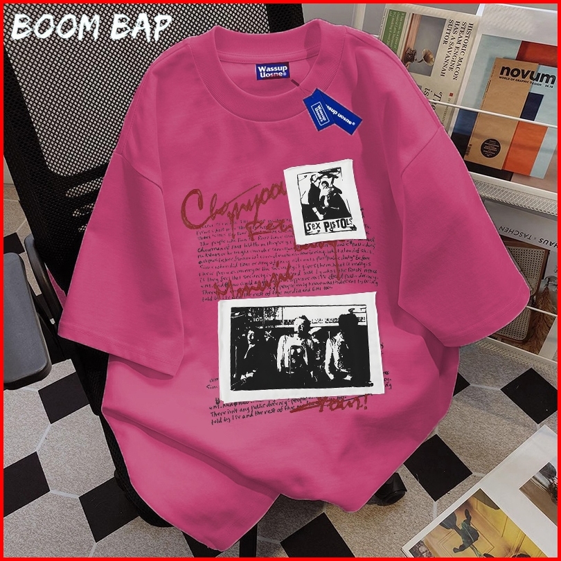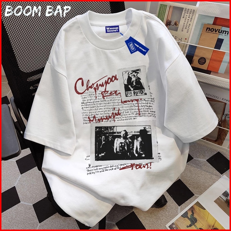 Boombap American Retro Style T-shirt Oversize Original Foto Print Top Kaos Wanita Putih Kaos Pria Dan Wanita Street Styl