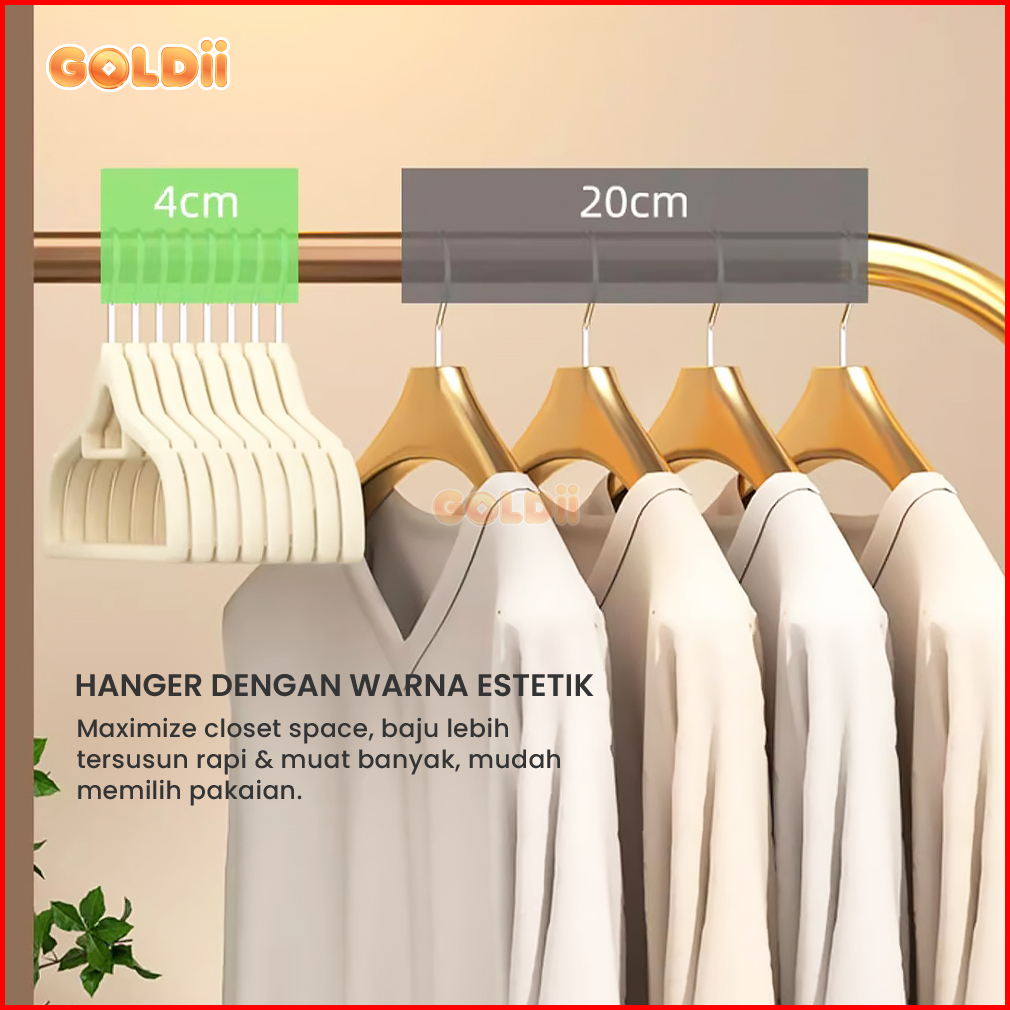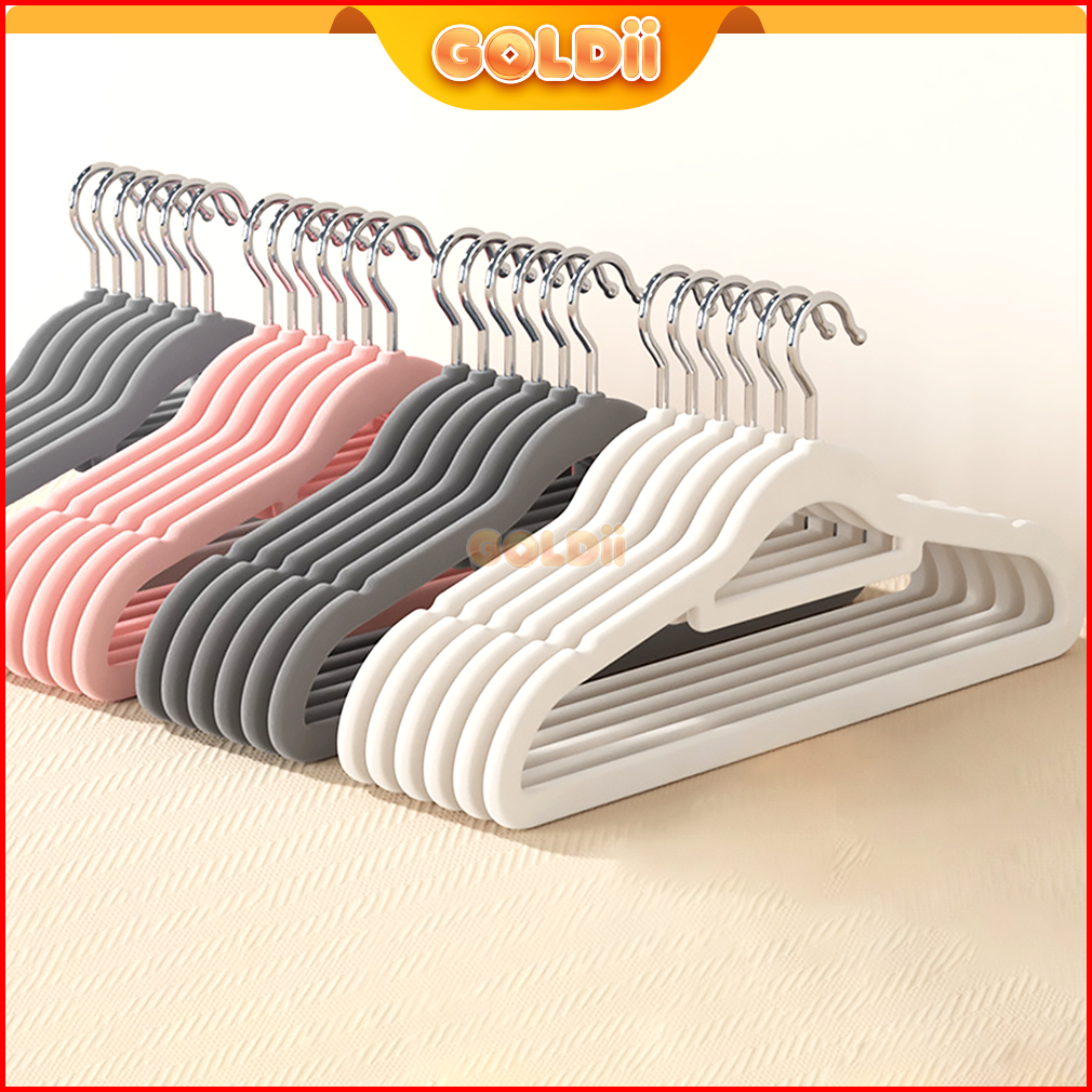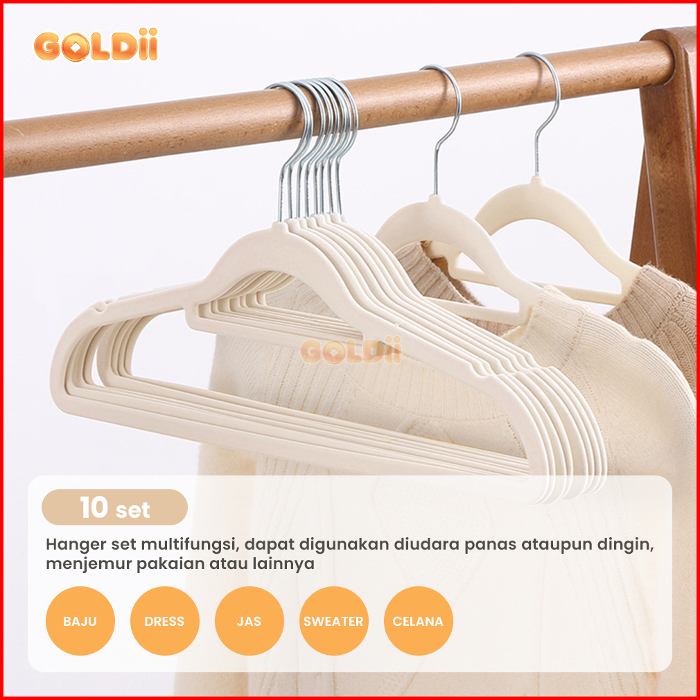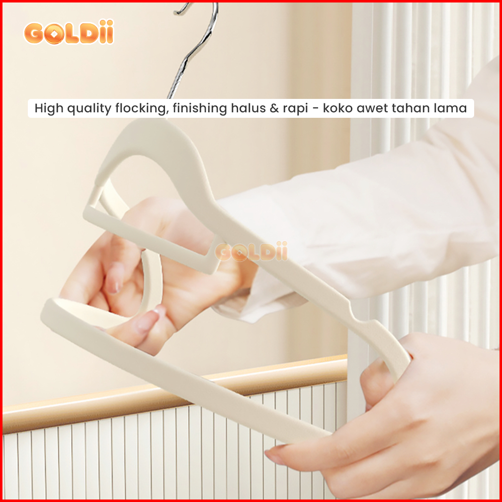Goldii - Hanger Gantungan Baju Bludru Plastik Tebal Anti Slip Berkualitas Isi 10 Pcs