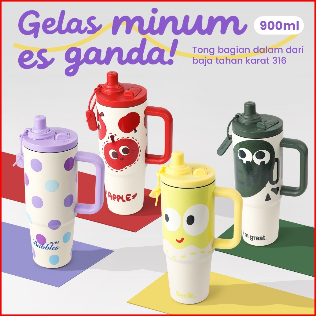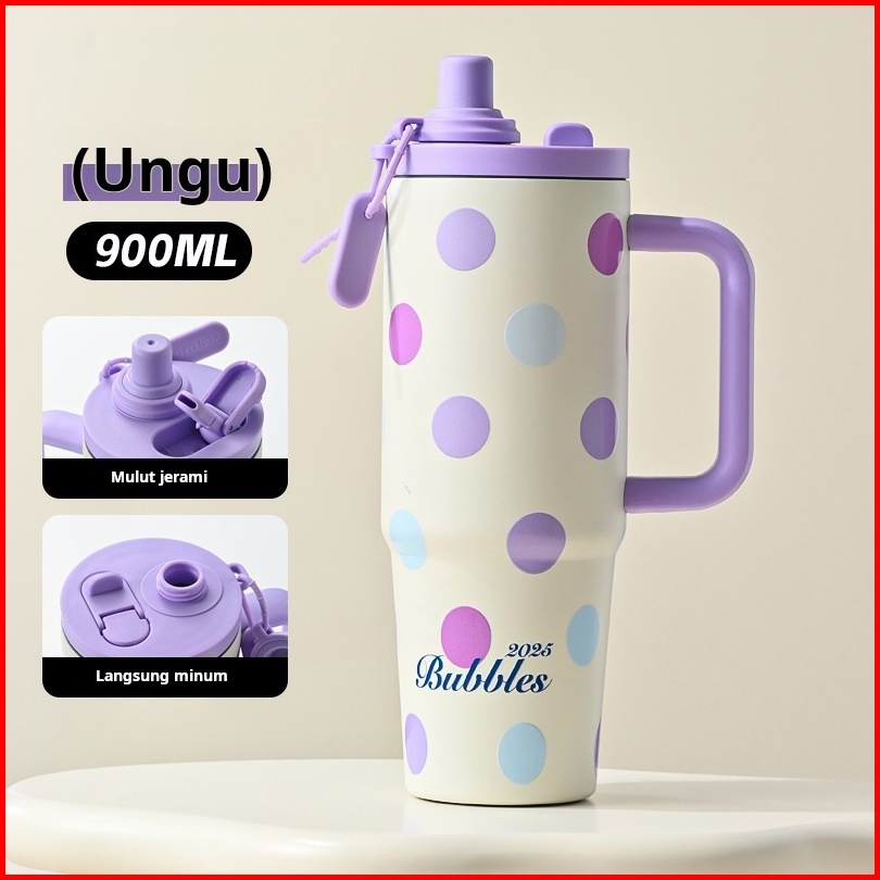 Tumbler Stainless Botol Minum Aesthetic Tahan Panas Dingin 24 Jam Gelas Minum Berkapasitas Besar 900ml Untuk Mobil Denga
