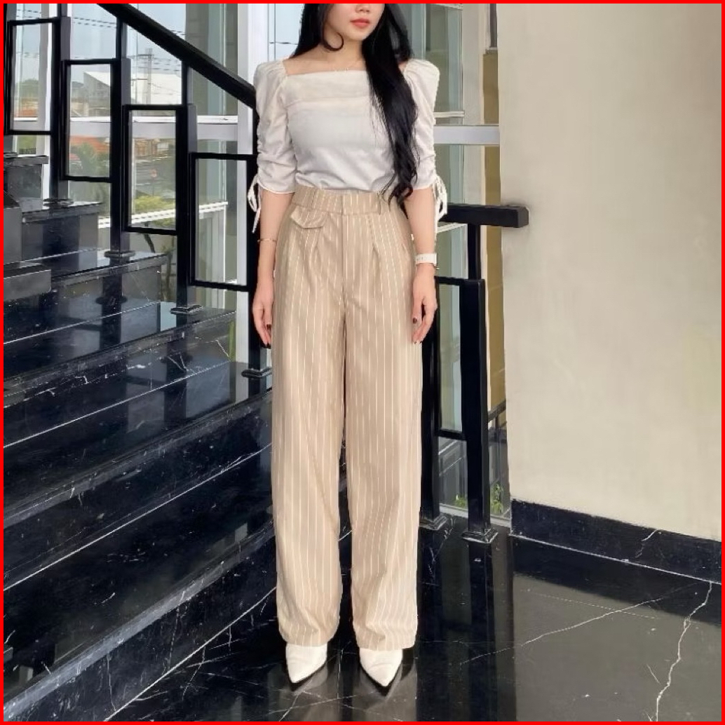 Celana Kulot Oro Pants Stripe Bangkok Anti Kusut Korean Style Highwaist