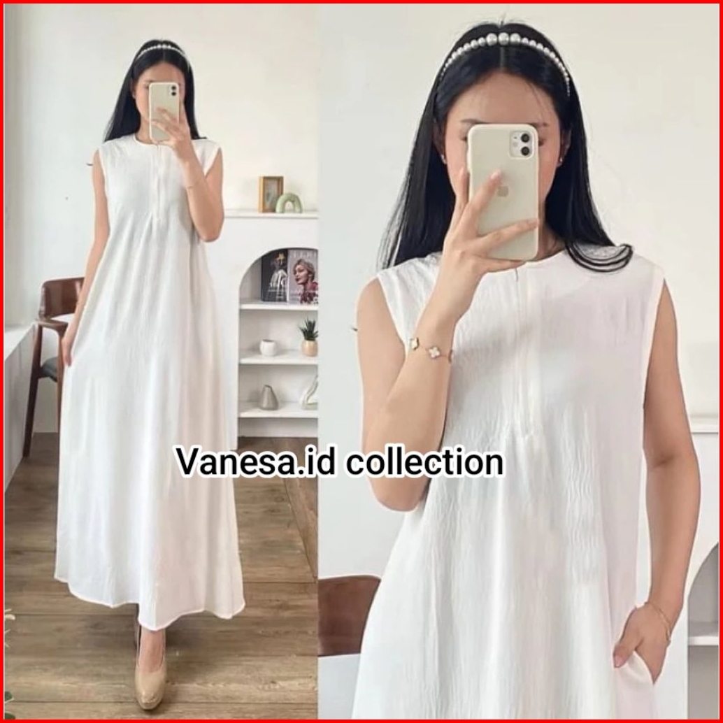 Inner Drees Tanpa Lengan Cringkel Airflow Premium Inner Dress Gamis Singlet Kutungan Busui