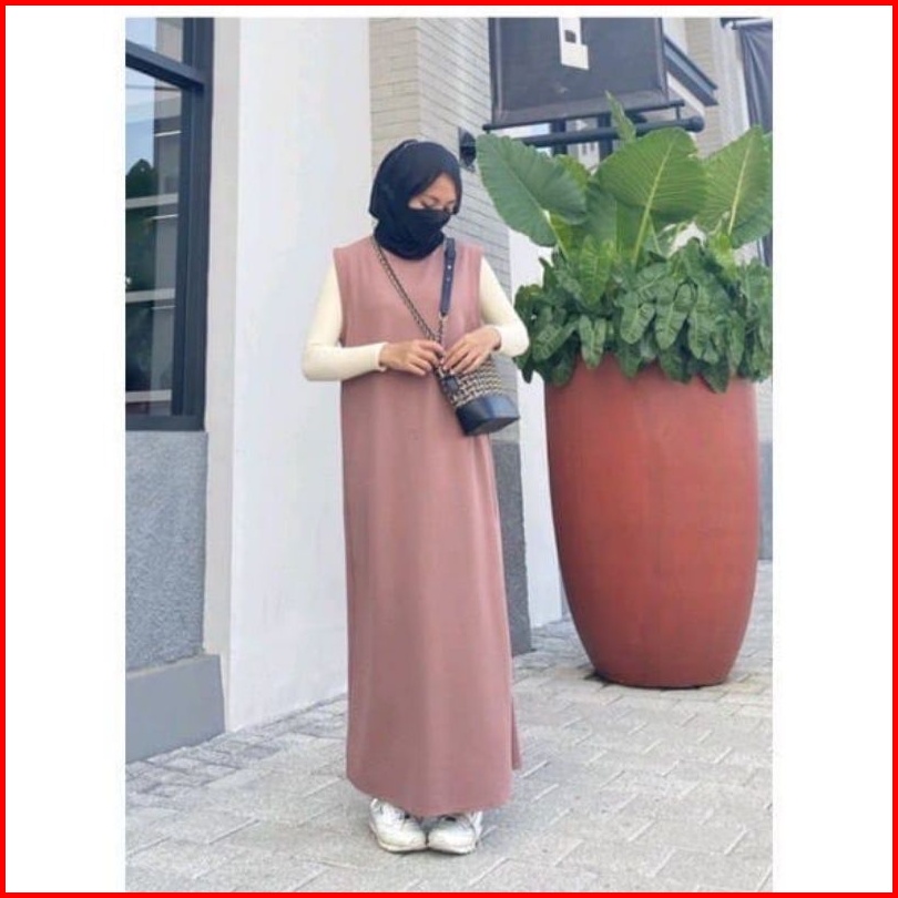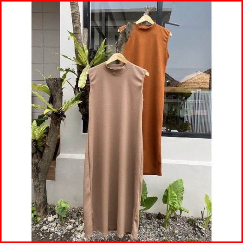 Inner Dress Knit Panjang Wanita Inner Dres Knit Tanpa Lengan