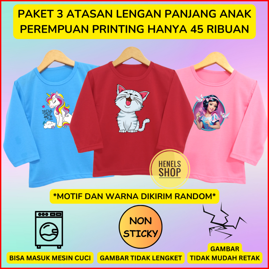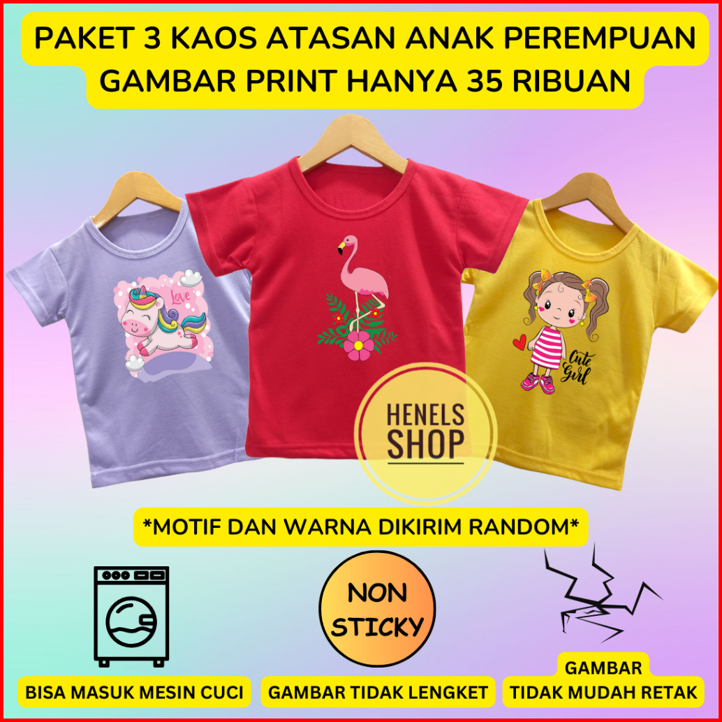 Kaos Anak Perempuan 3 Pcs Atasan Anak Perempuan Usia 3 - 7 Tahun