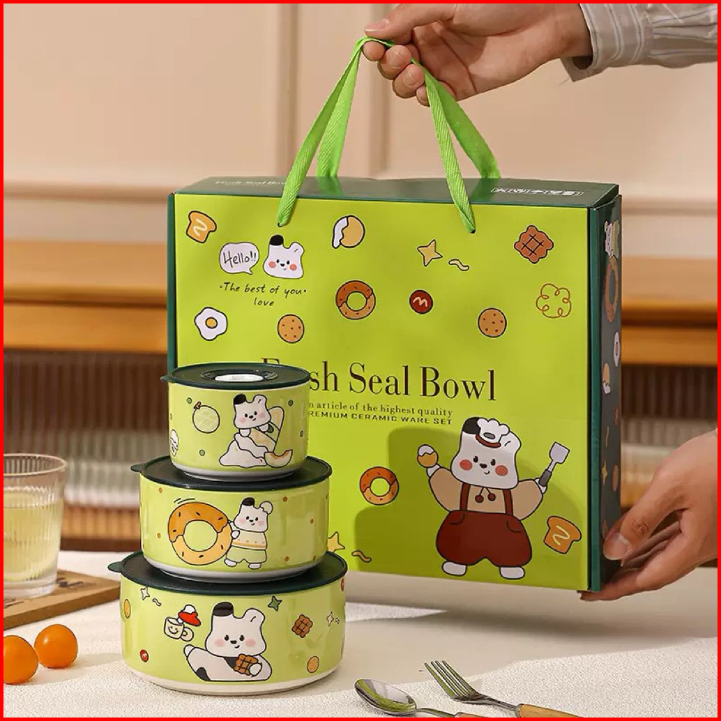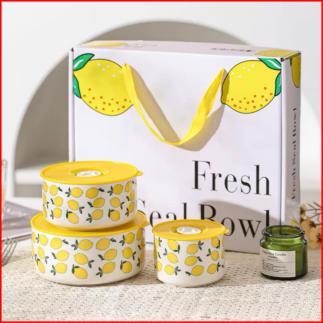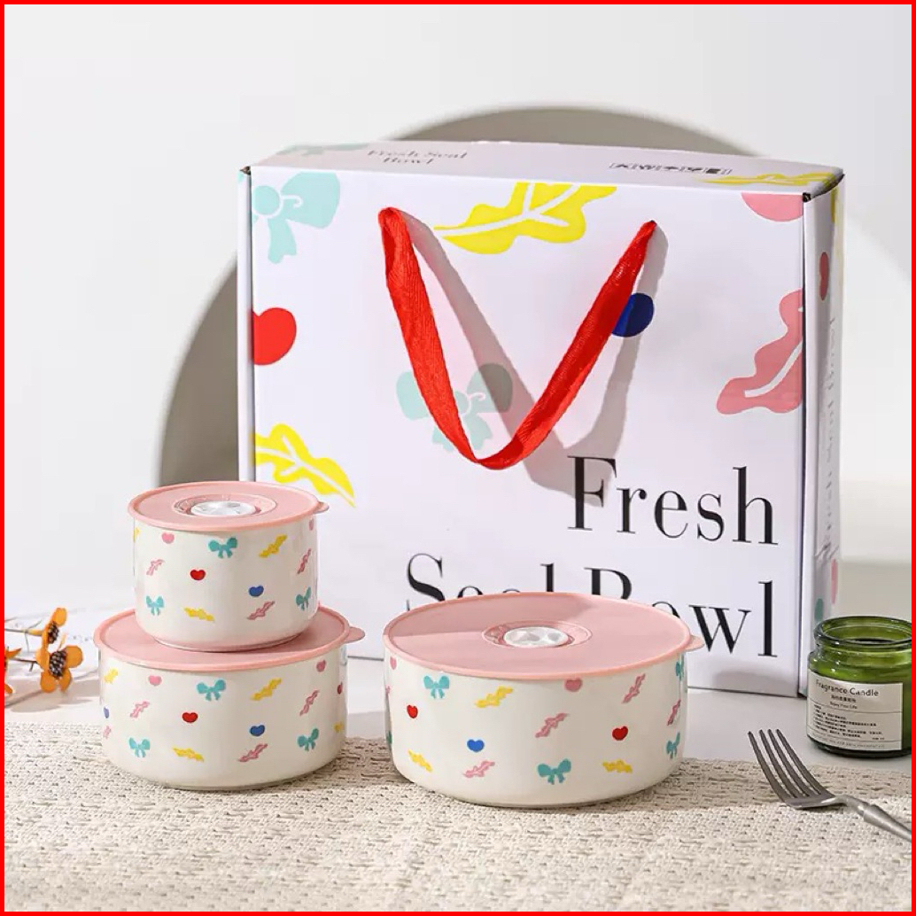 Three Piece Set Sealed Bowl Noodle Bowl Microwave 3 Pcs Set Mangkok Tutup Seal