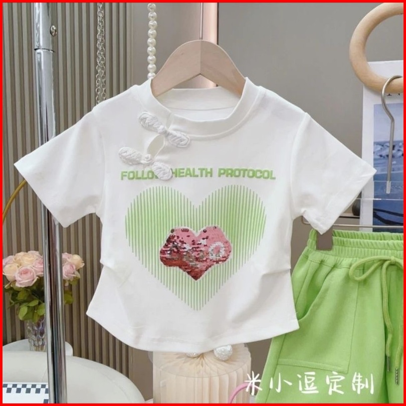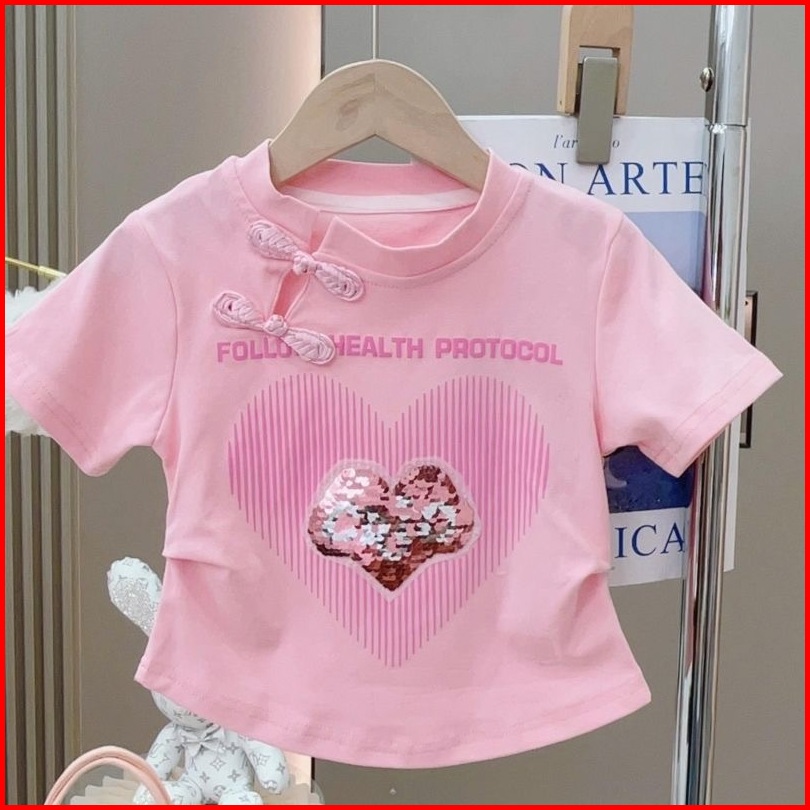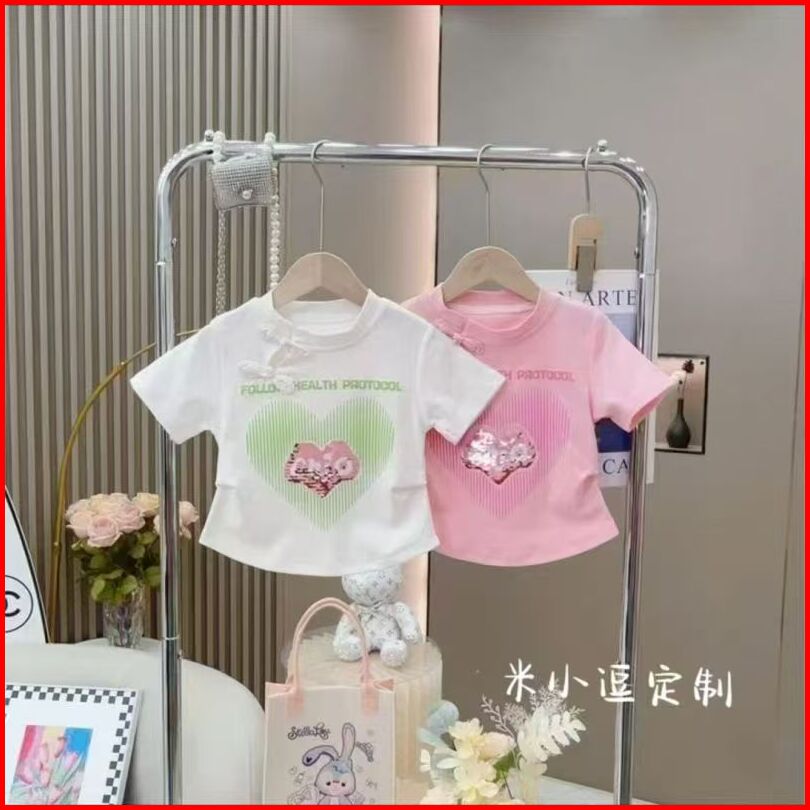 Princess Kesli 2-11 Tahun Kaos Katun Murni Untuk Perempuan Tren Musim Panas 2025 Pola Cinta Kekanak-kanakan Selebriti In