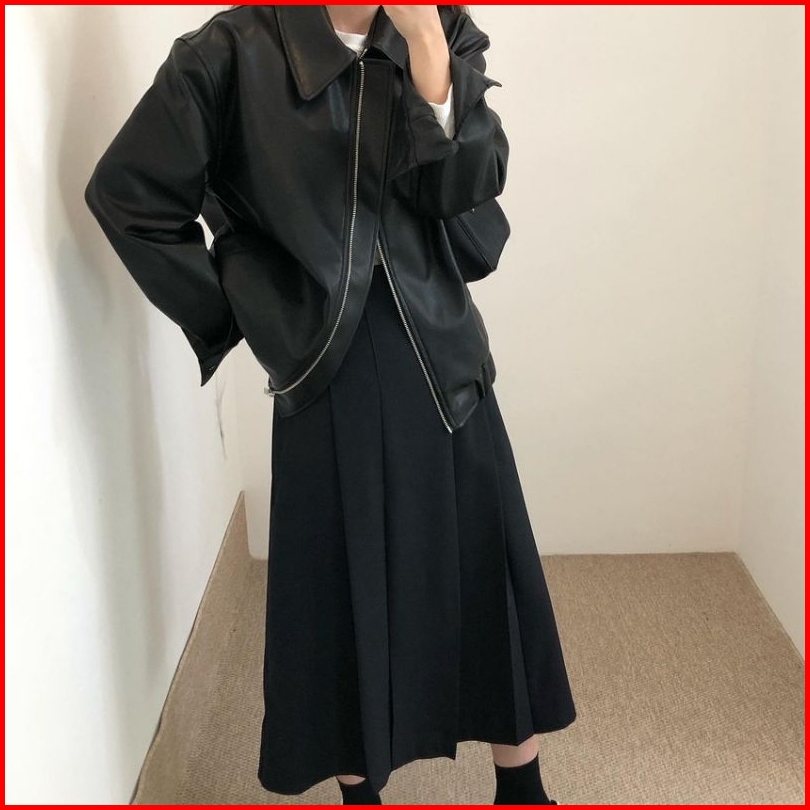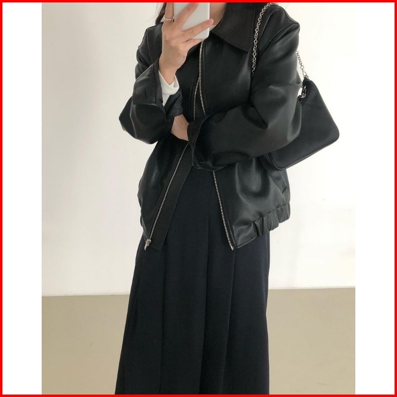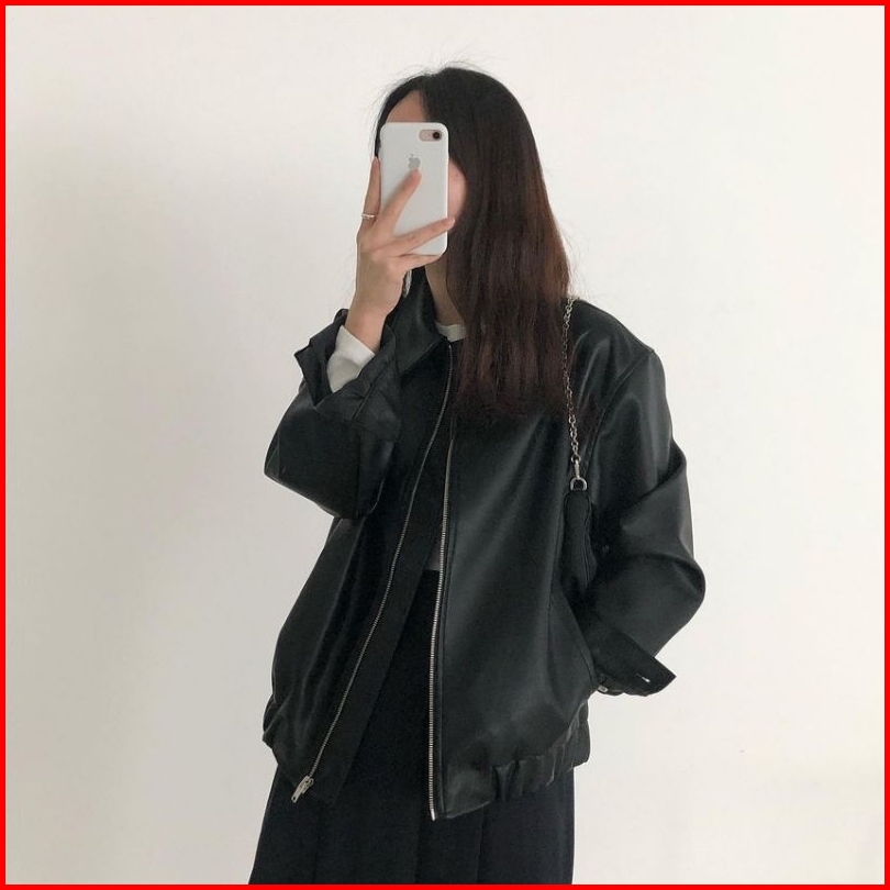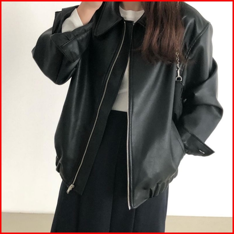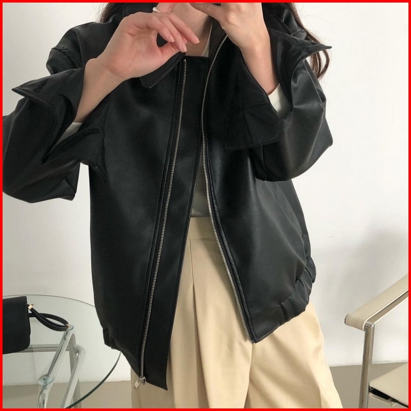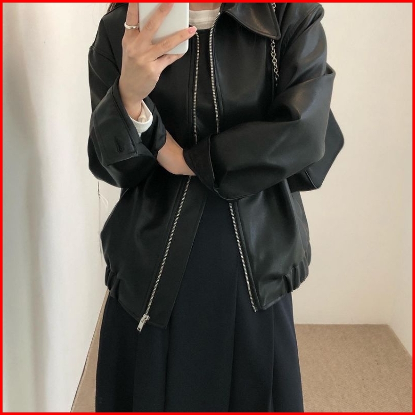Jacket Kulit Kerah Cewe Terbaru Clasic Style Jaket Semi Kulit Kerah Karet Cewek Casual Polos