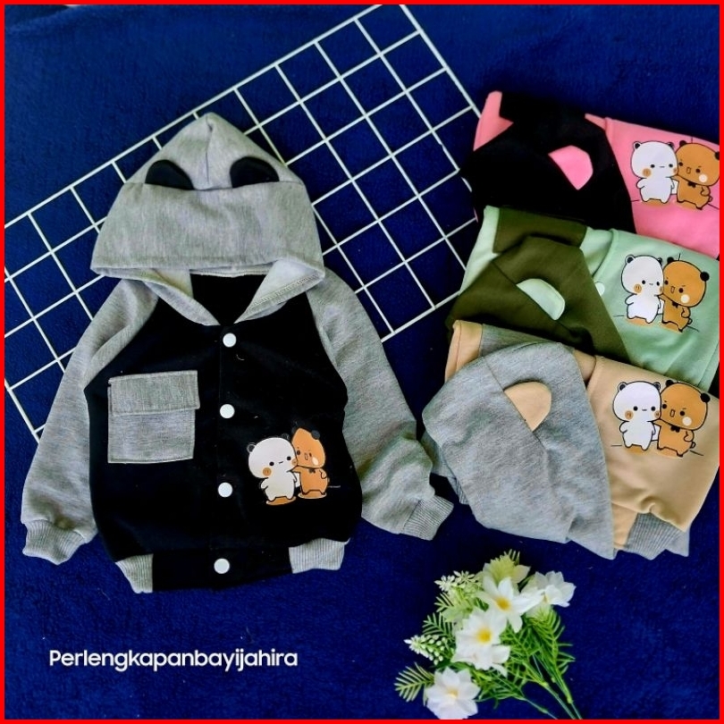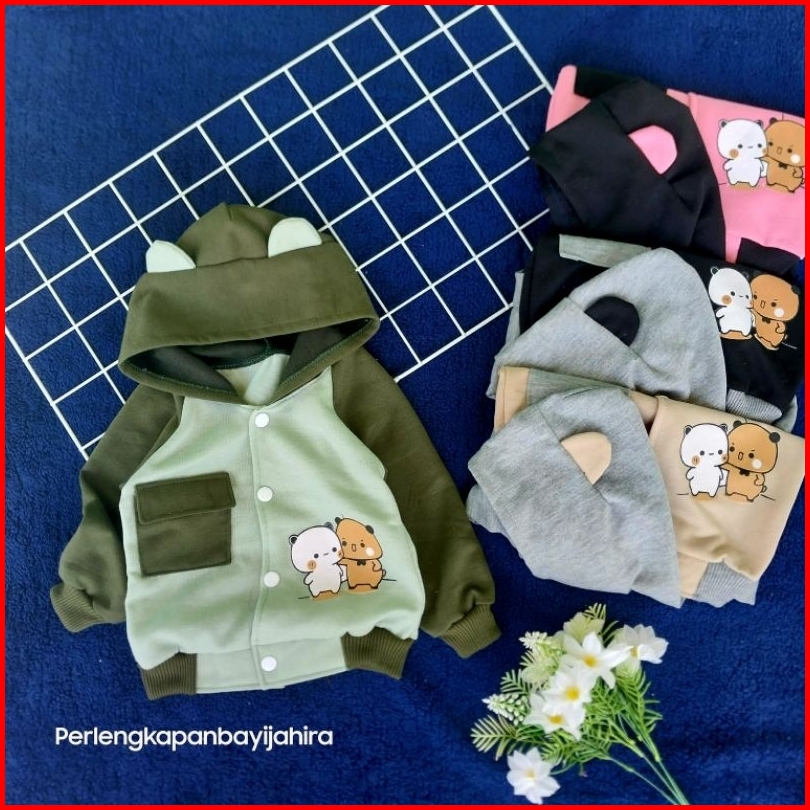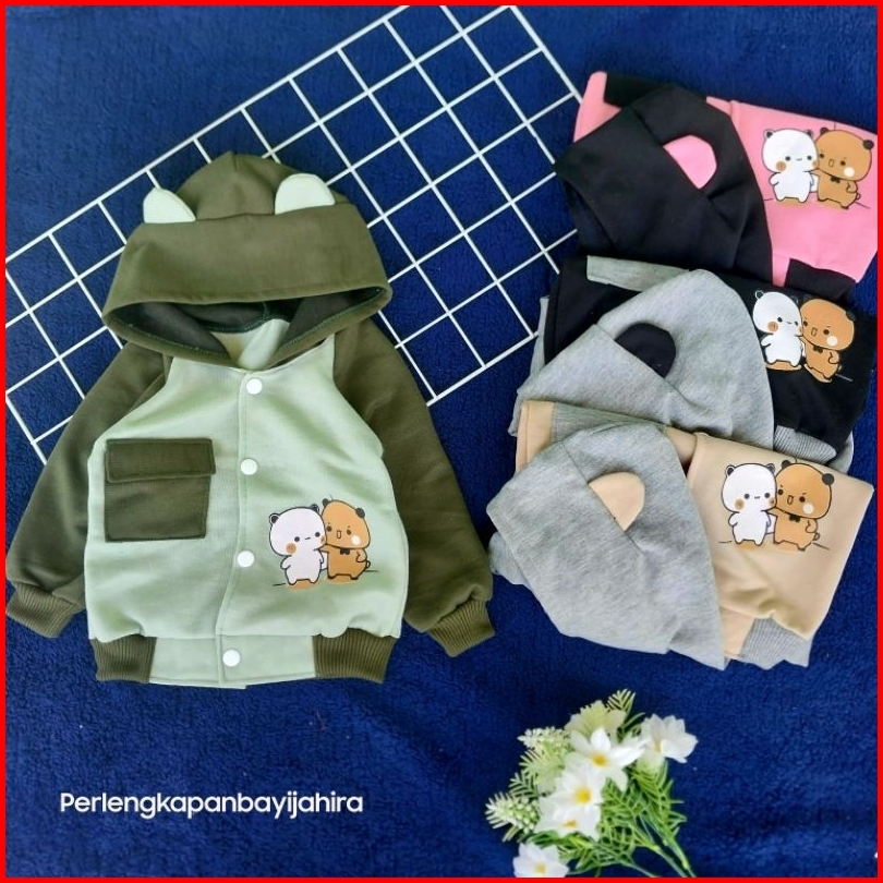 Jaket Bayi Saku Reglan Fleece Motif Duo Bear