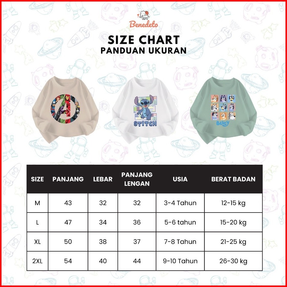 Benedeto - Kaos Anak Panjang Premium 1-12 Tahun 100 Katun 24s Baju Anak Laki Perempuan - V2 Benb66