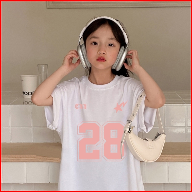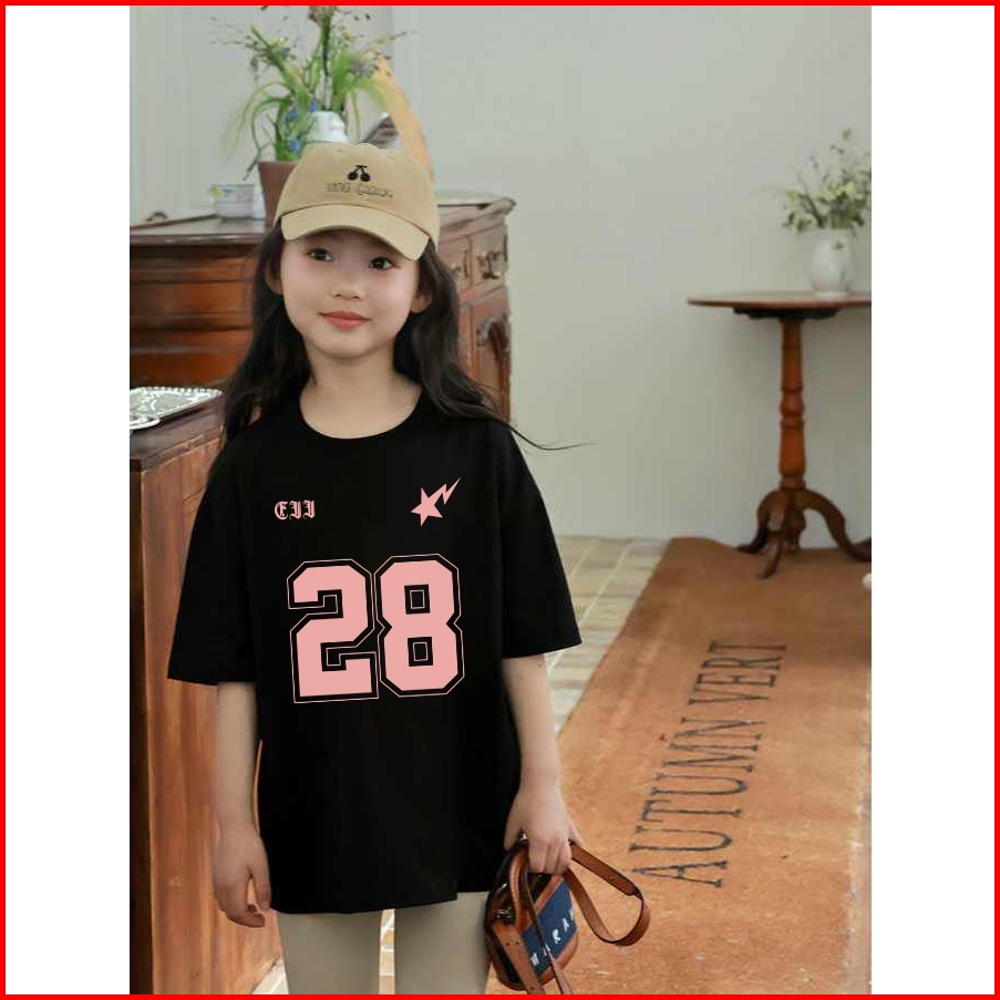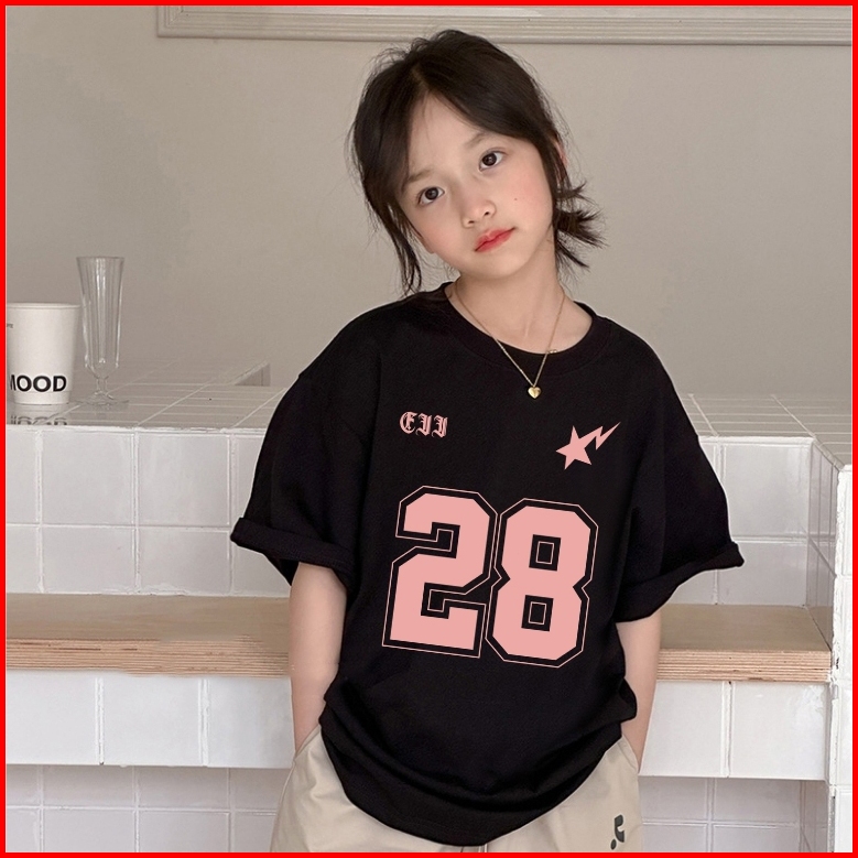 Kaos Anak Cewek 10 Tahun Import 2-12 Tahun Kaos Cetakan Angka Merah Muda 28 Korea Style Premium Baju Atasan Kaos Anak Pe