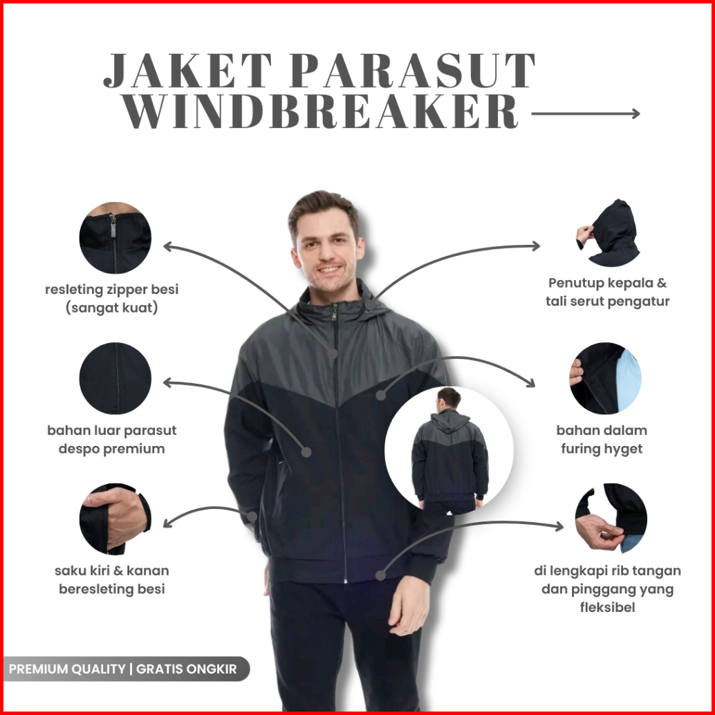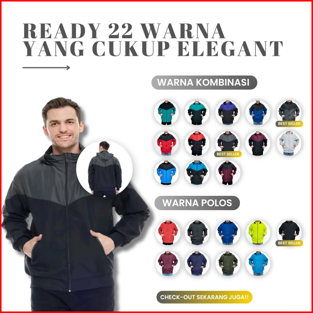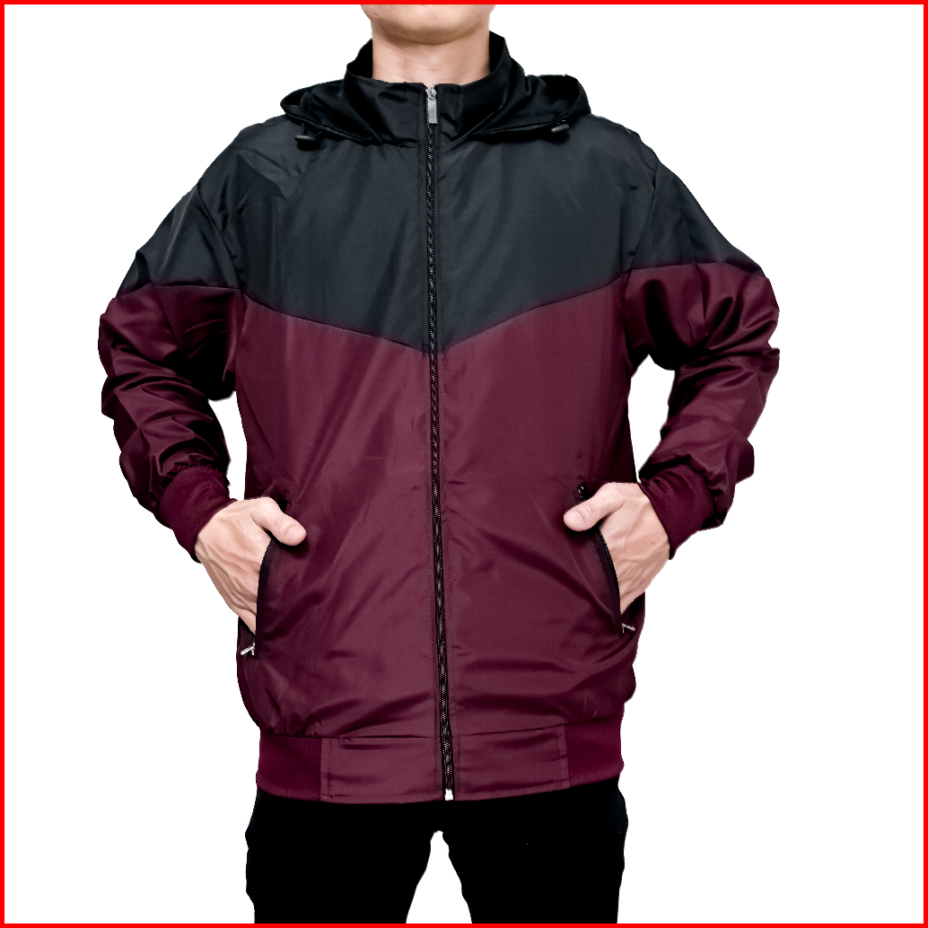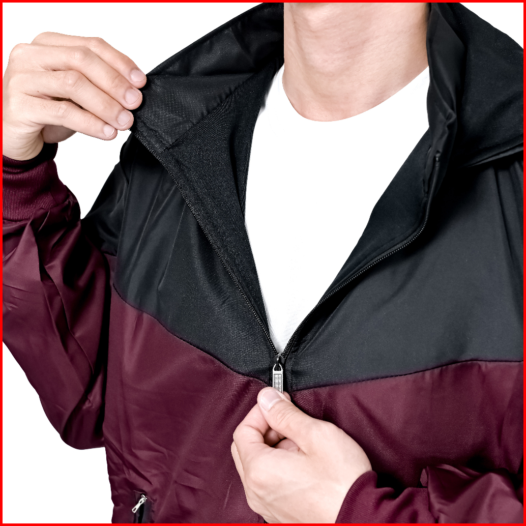 Indo - Jaket Parasut Olahraga Kombinasi Jacket Lari Jogging Pria Wanita Hitam Maroon
