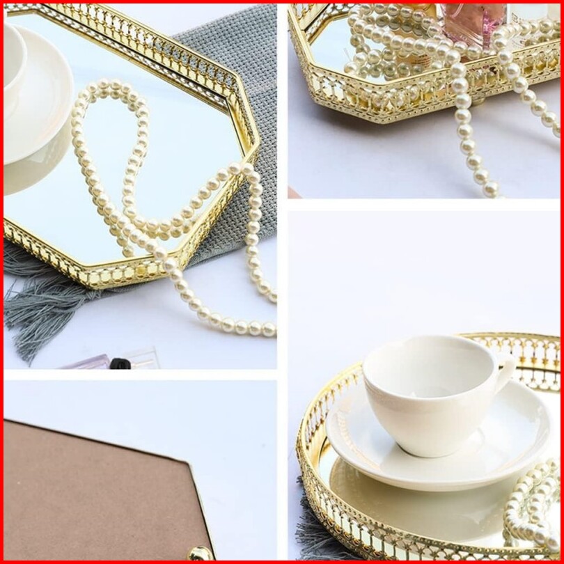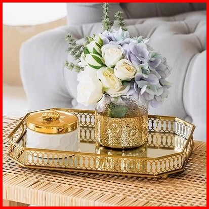 Nampan Estetik Mewah Tray Aesthetic Nordic Cahaya Gaya Mewah Besi Tempa Kaca Cermin Dasar Tray Ruang Tamu Desktop Tray R
