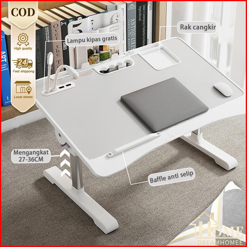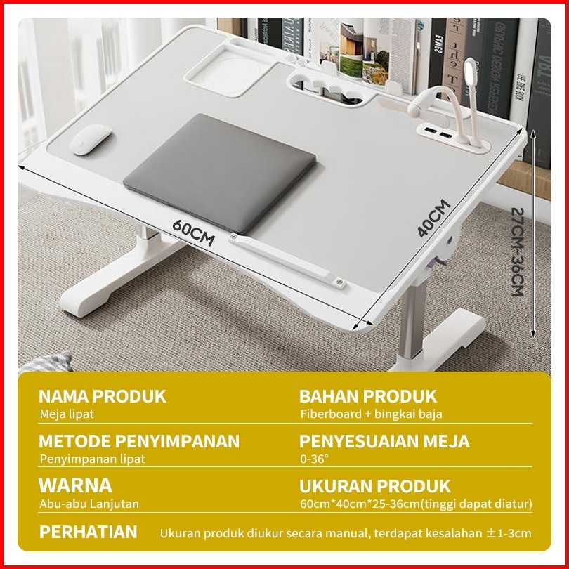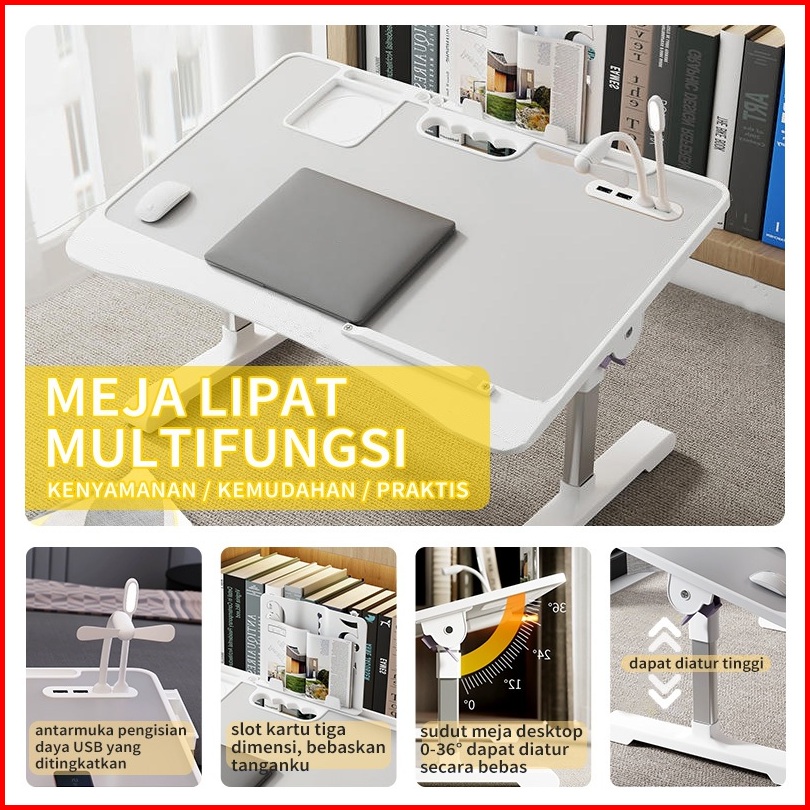 Meja Lipat Laptop Belajar Foldable Bed Table Adjustable Serbaguna With Usb Port Meja Portable