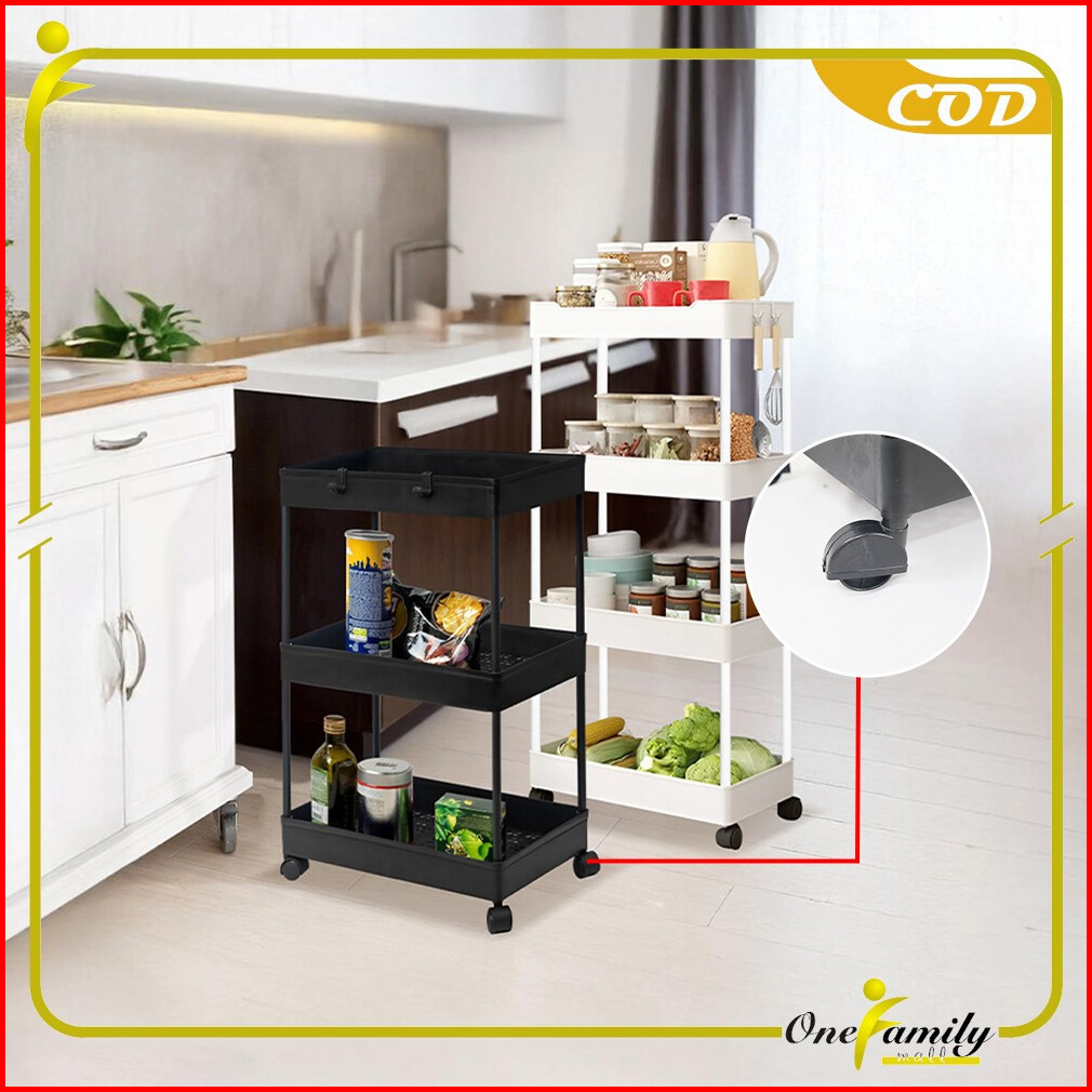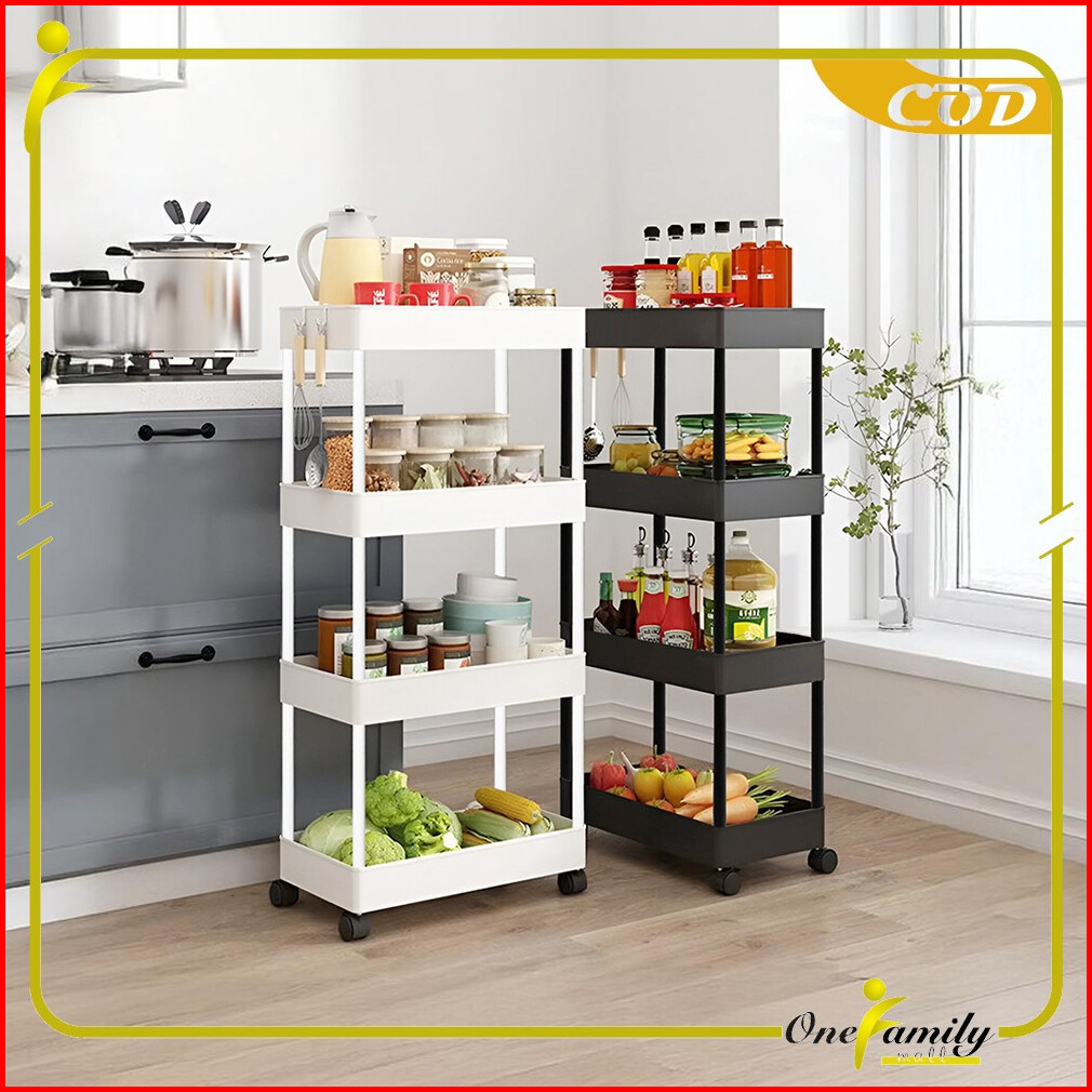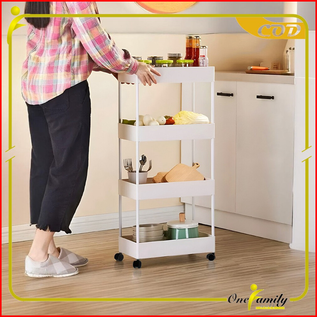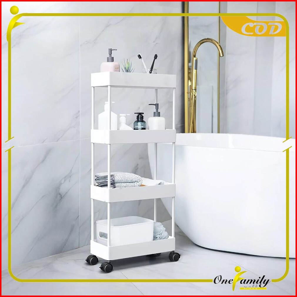 One-c802 Rak Susun Serbaguna 4 Tingkat Dengan Roda Bahan Plastik Rak Dapur Roda Portable Rak Kamar Mandi Trolley Tempat