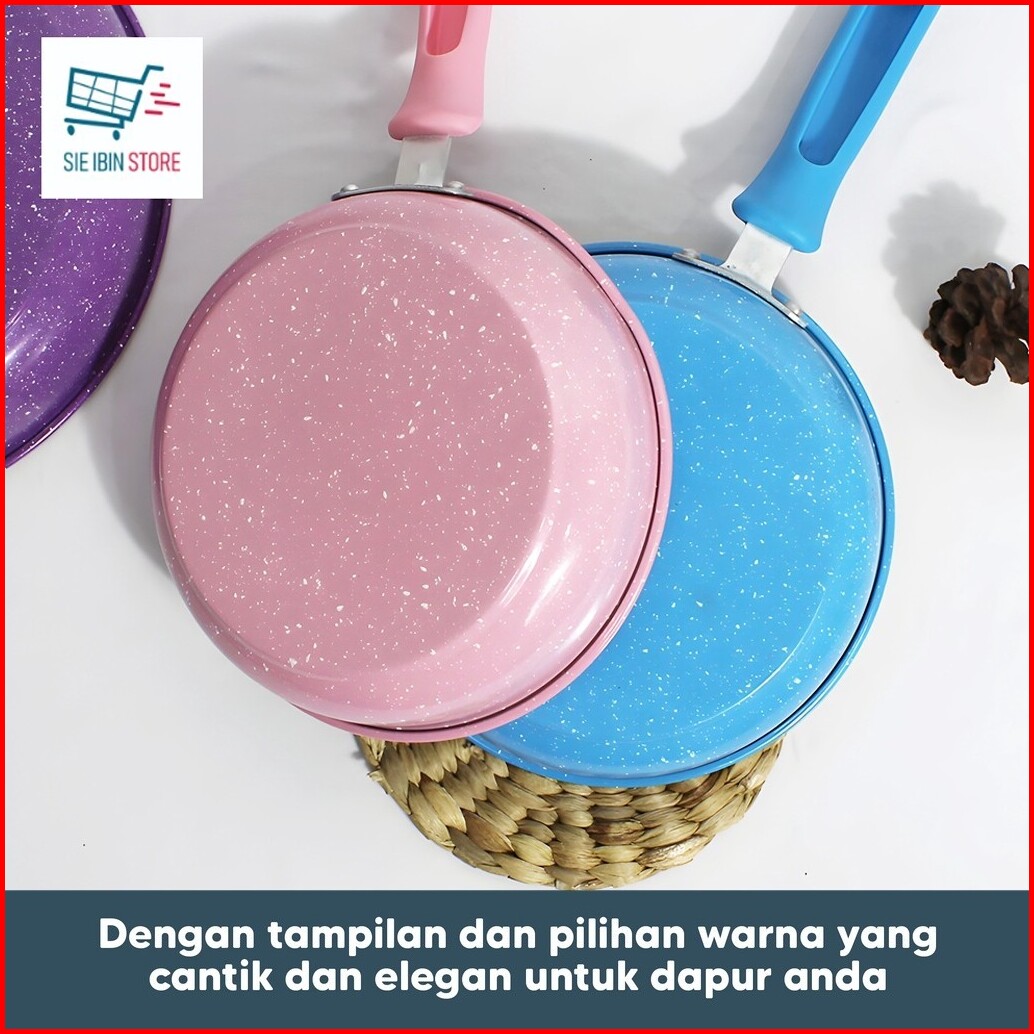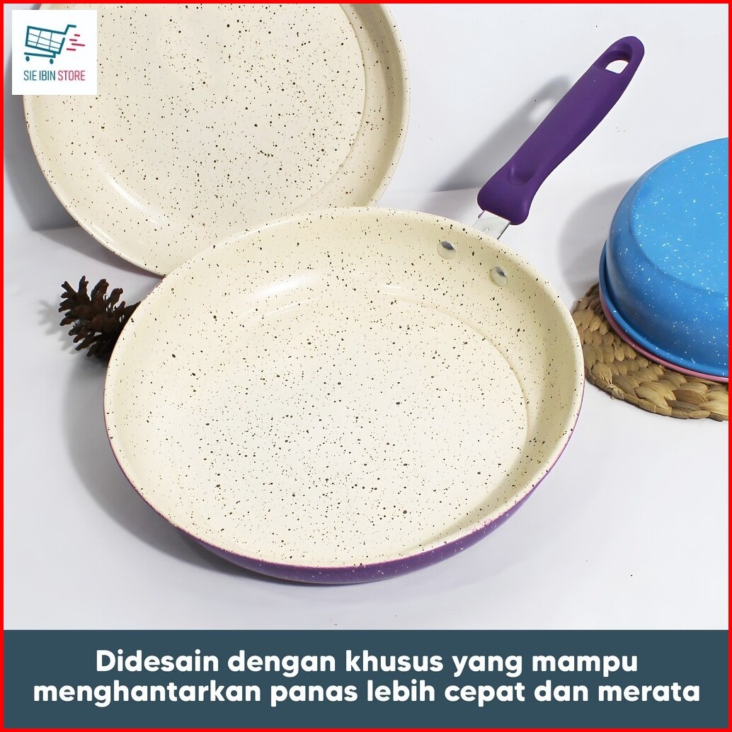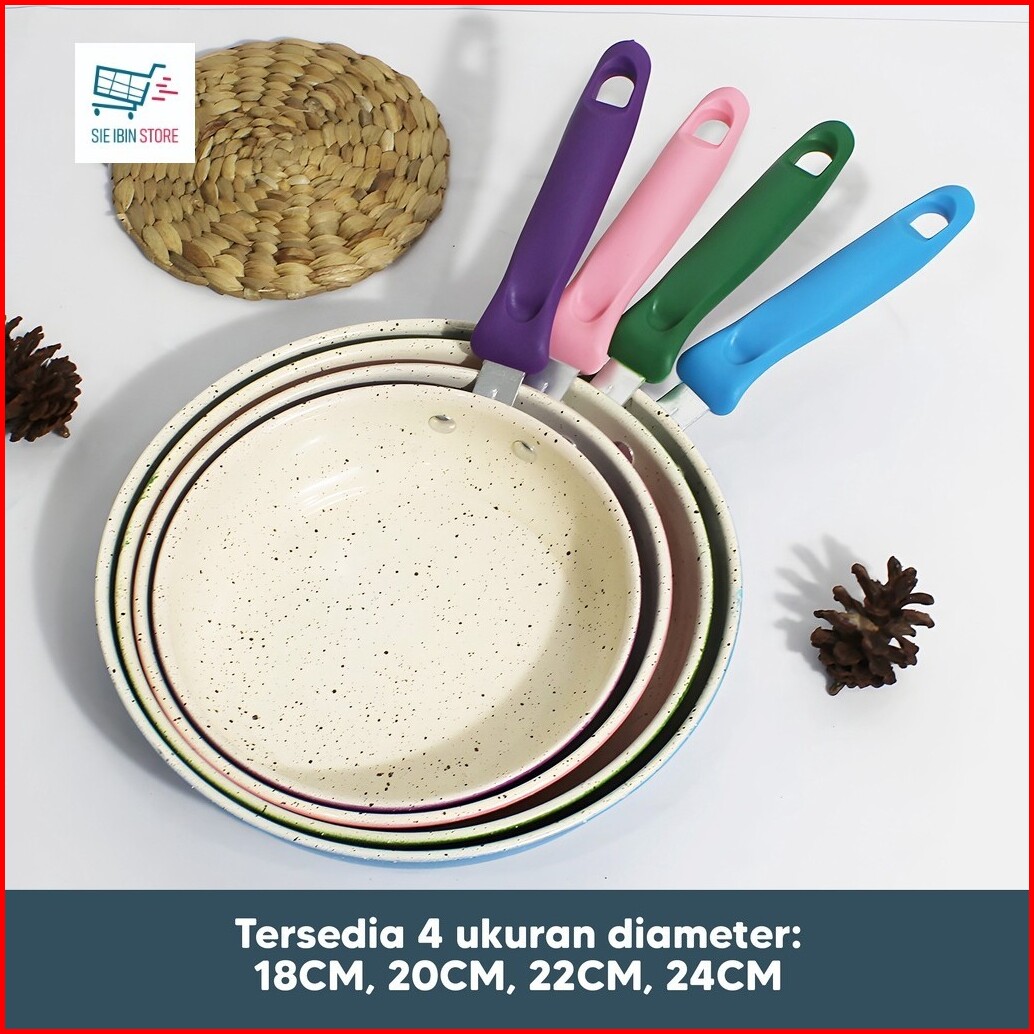 Panci Teflon Frypan Warna Marble Pan Anti Lengket Wajan Gagang 18cm 20cm 22cm 24cm Gratis Ongkir -js