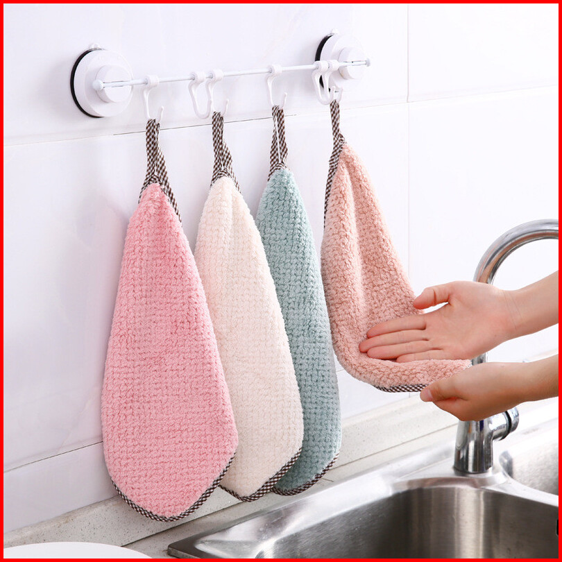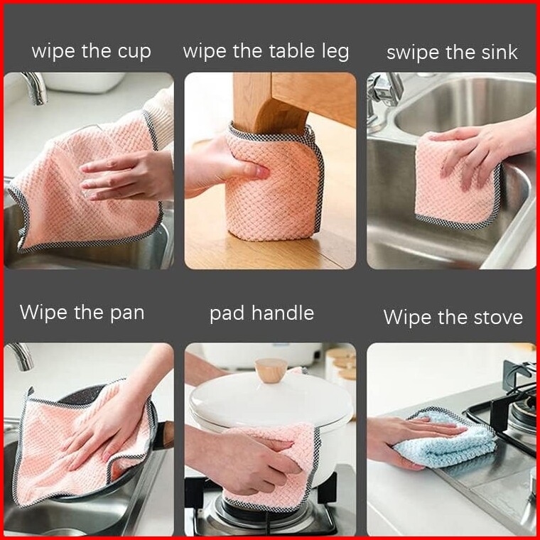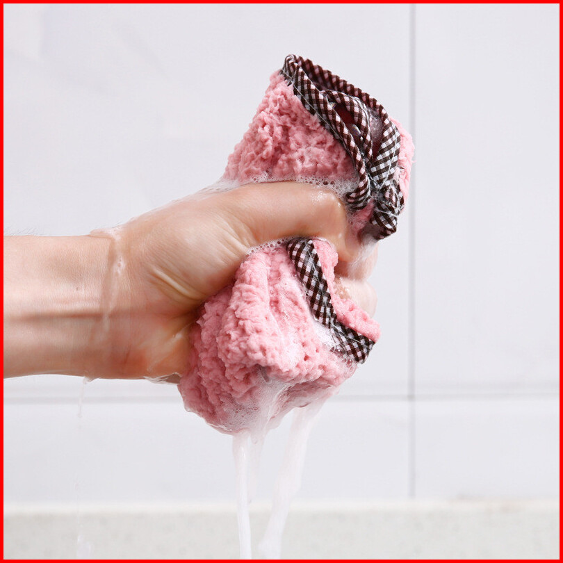 5pcs Lap Tangan Handuk Coral Fleece Microfiber Kain Lap Piring Anti Minyak Bahan Microbulu