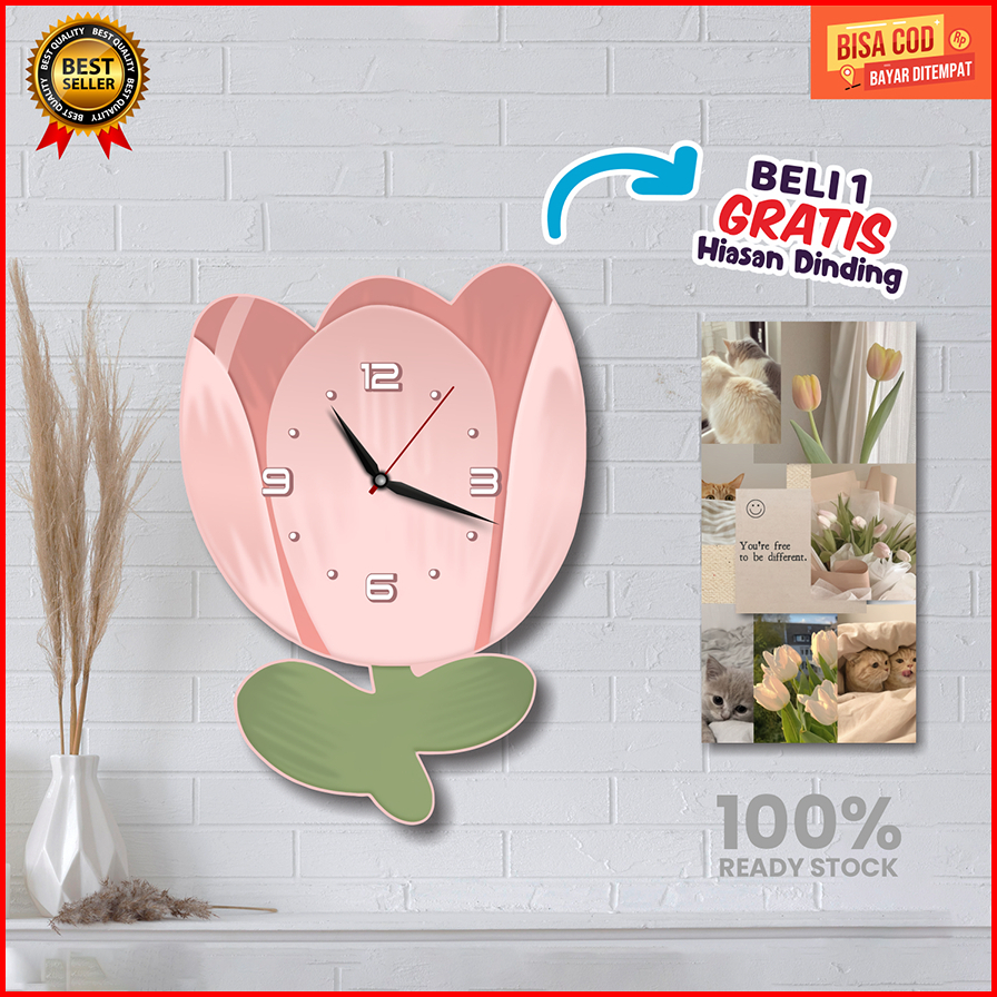 Grosir Jam Dinding Beli 1 Gratis 1 Hiasan Dinding Jam Dinding Anak Tema Bunga Tulip Jam Dinding Anak Karakter Jam Dindin