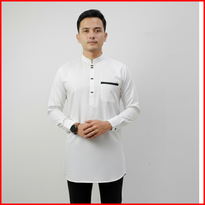 Baju Koko Kurta Pria Dewasa Putih Lengan Panjang Jumbo Slimt Fit Katun Toyobo Premium
