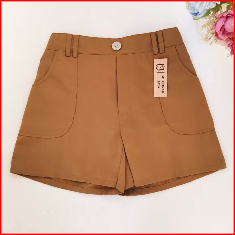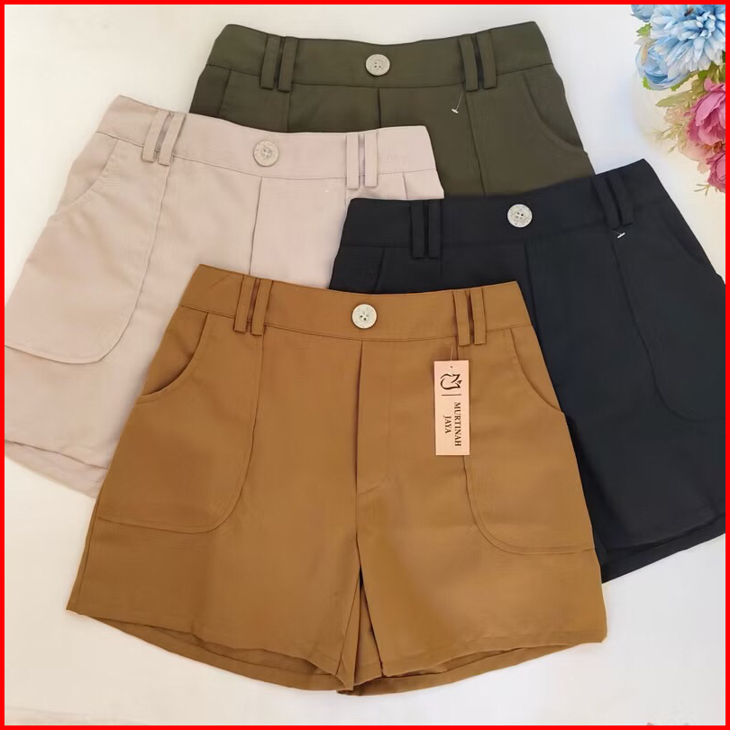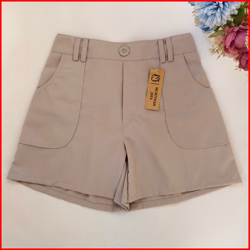 Celana Pendek Wanita Highwaist Korean Style Dewasa Hotpants Wanita Polos Bahan Katun Tebal Adem