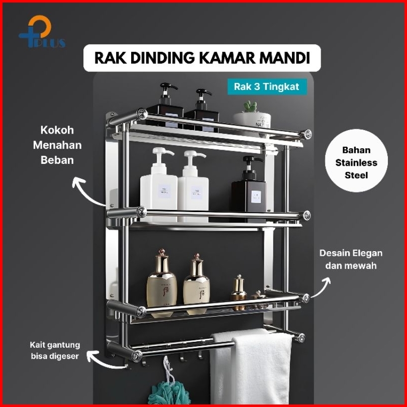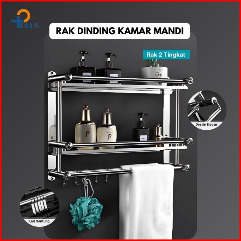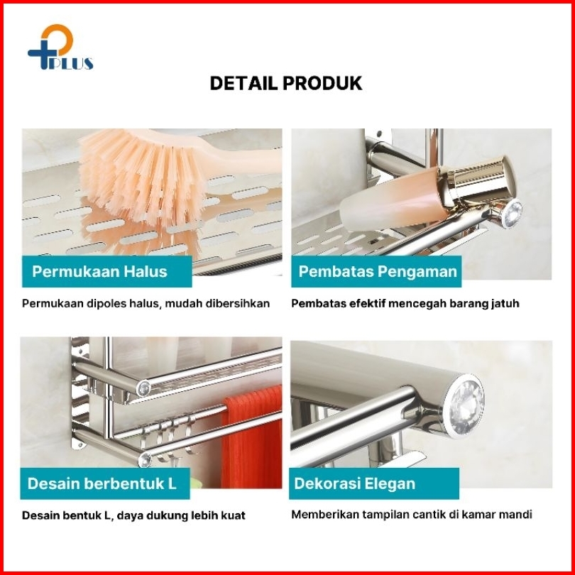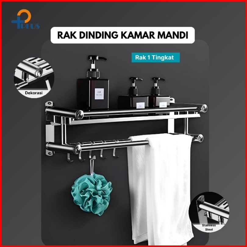 Pplus Rak Kamar Mandi Stainless Gantungan Handuk Model Tanpa Mesin Bor Sus304 Lem Super Kuat Rak Handuk Gantungan Dindin