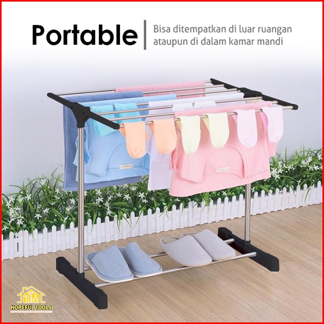 Rak Jemuran Handuk Pakaian Lipat Portable Tahan Karat Serbaguna Minimalis Lb-b01b