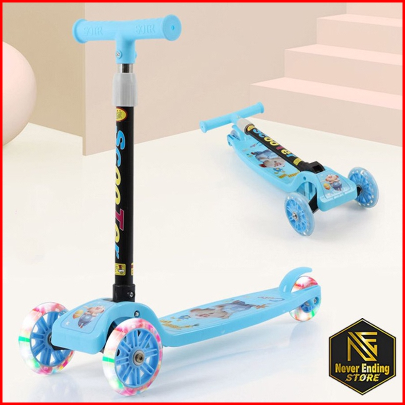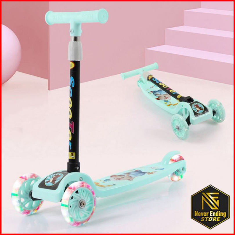 Scooter Otoped Skuter Anak Warna Lampu Led Ban Menyala Balita Murah Pink Biru Hijau