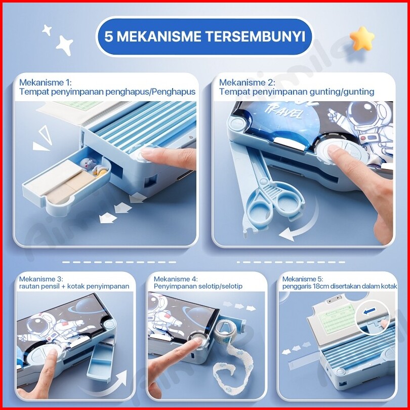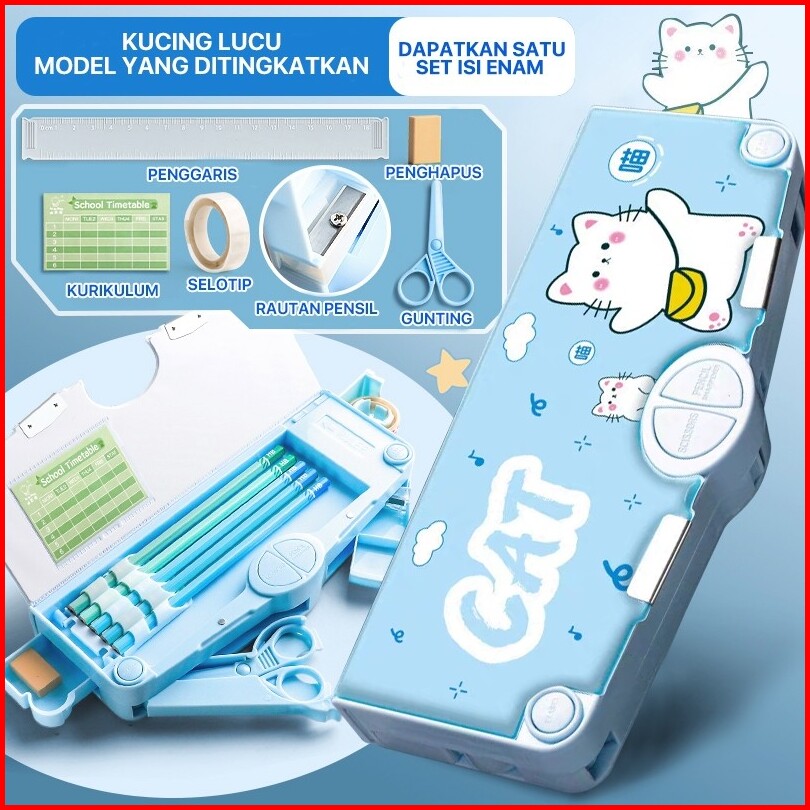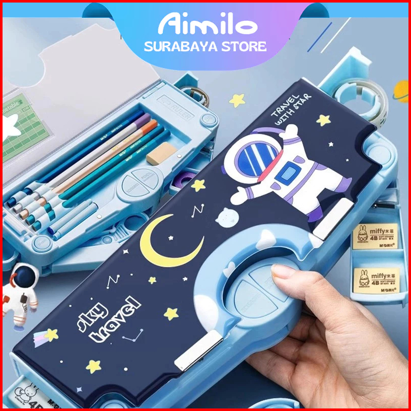 Aimilo Tempat Pensil Multifungsi Kotak Pensil Anak Lengkap Peruncing Gunting Isolasi Penghapus Penggaris Alat Tulis Seko