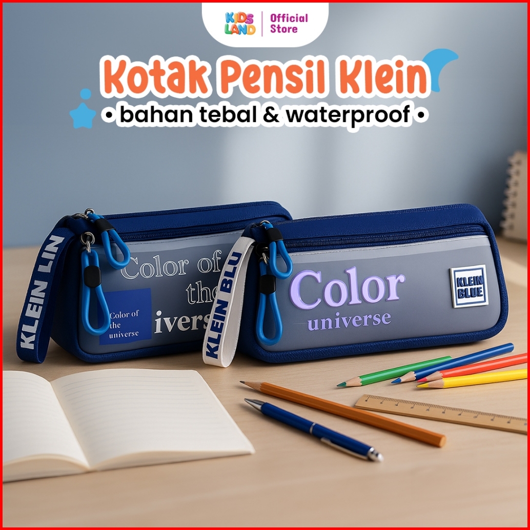Kidsland Pouch Tempat Pensil Blue Anak Sd Smp Kanvas Double Resleting Aesthetic Elegan