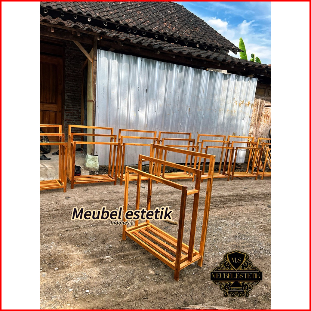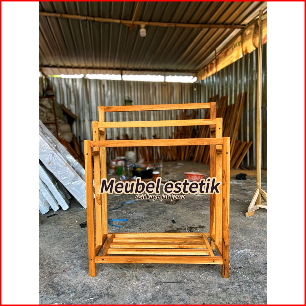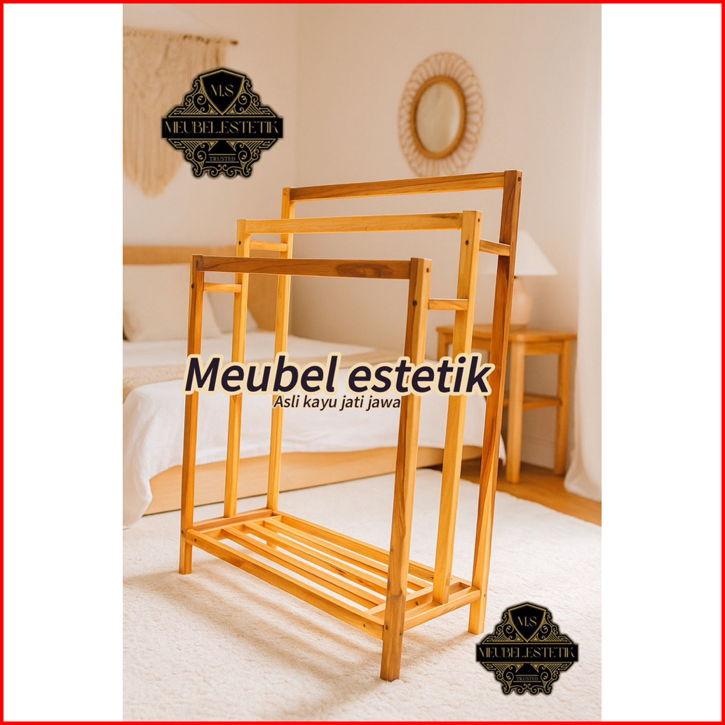 Jemuran Handuk Gantungan Handuk Rak Handuk Dengan Bawah Ada Tempat Rak Serbaguna Kayu Jati Asli Anti Rayap Anti Air