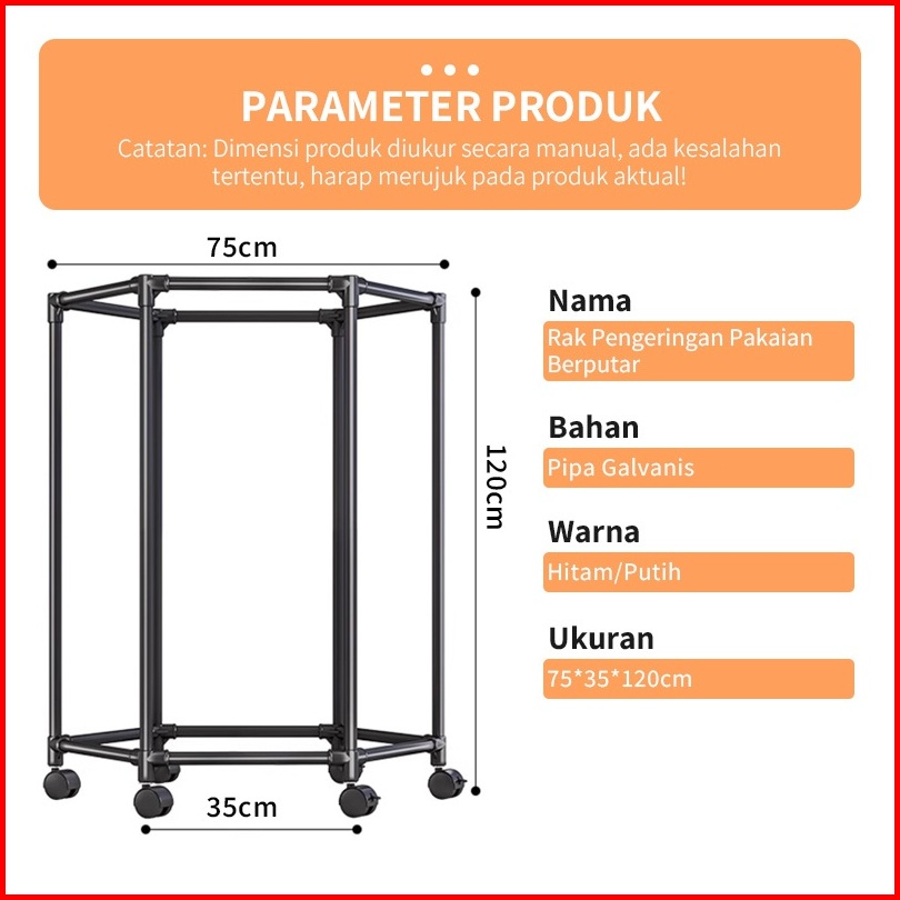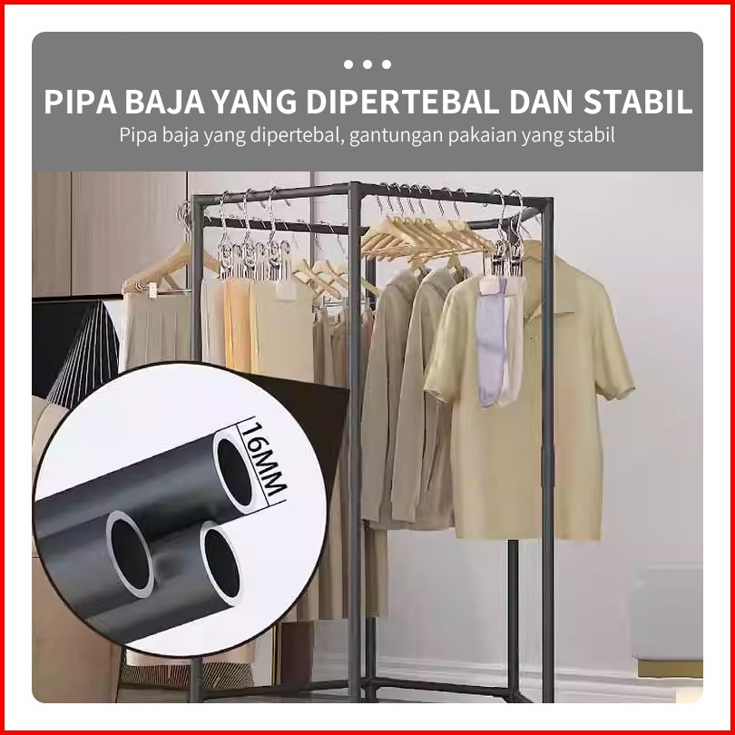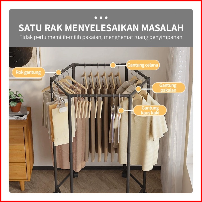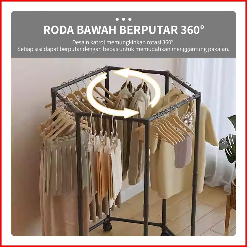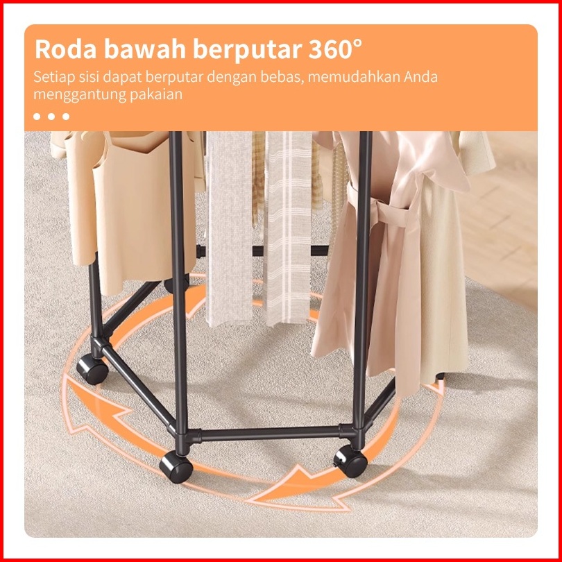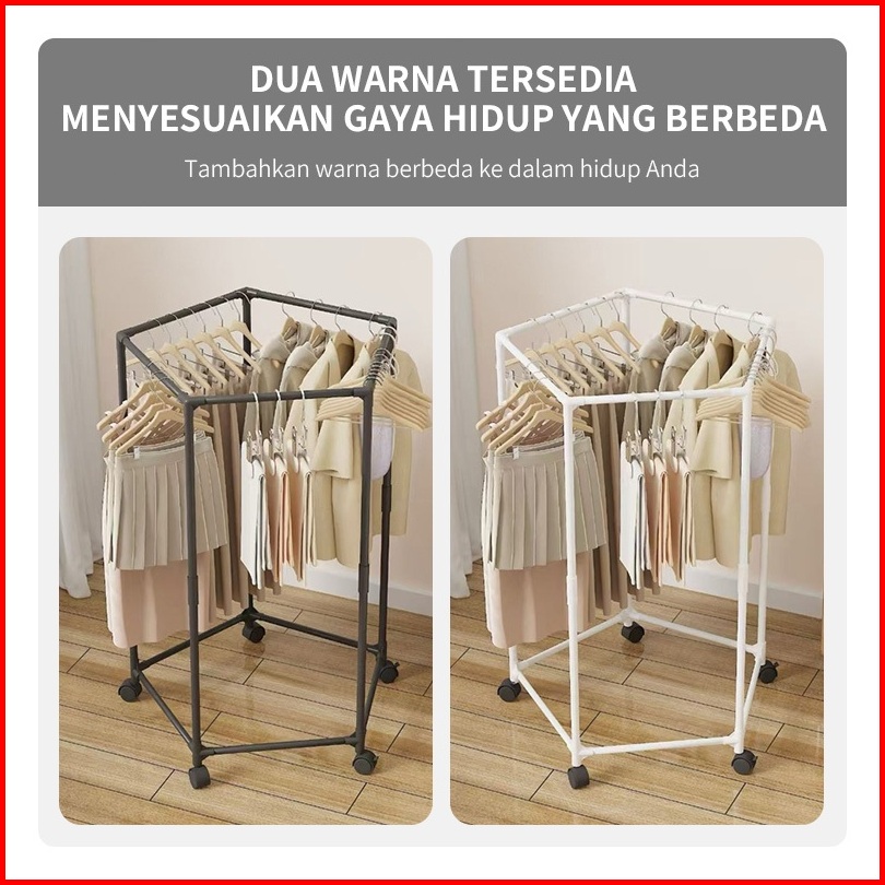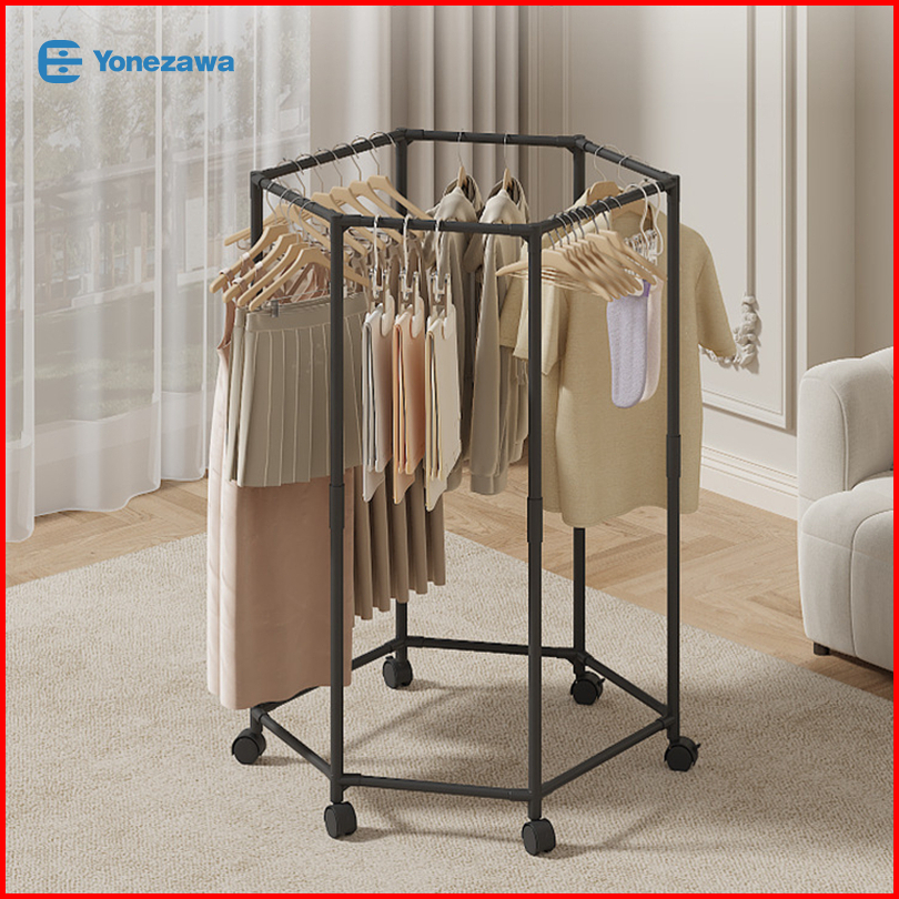 Yonezawa Rotasi 360 Stand Hanger Dengan 6 Roda Rak Gantung Baju Besi Putar Serbaguna Jemuran Pakaian Jemuran Baju Jemura