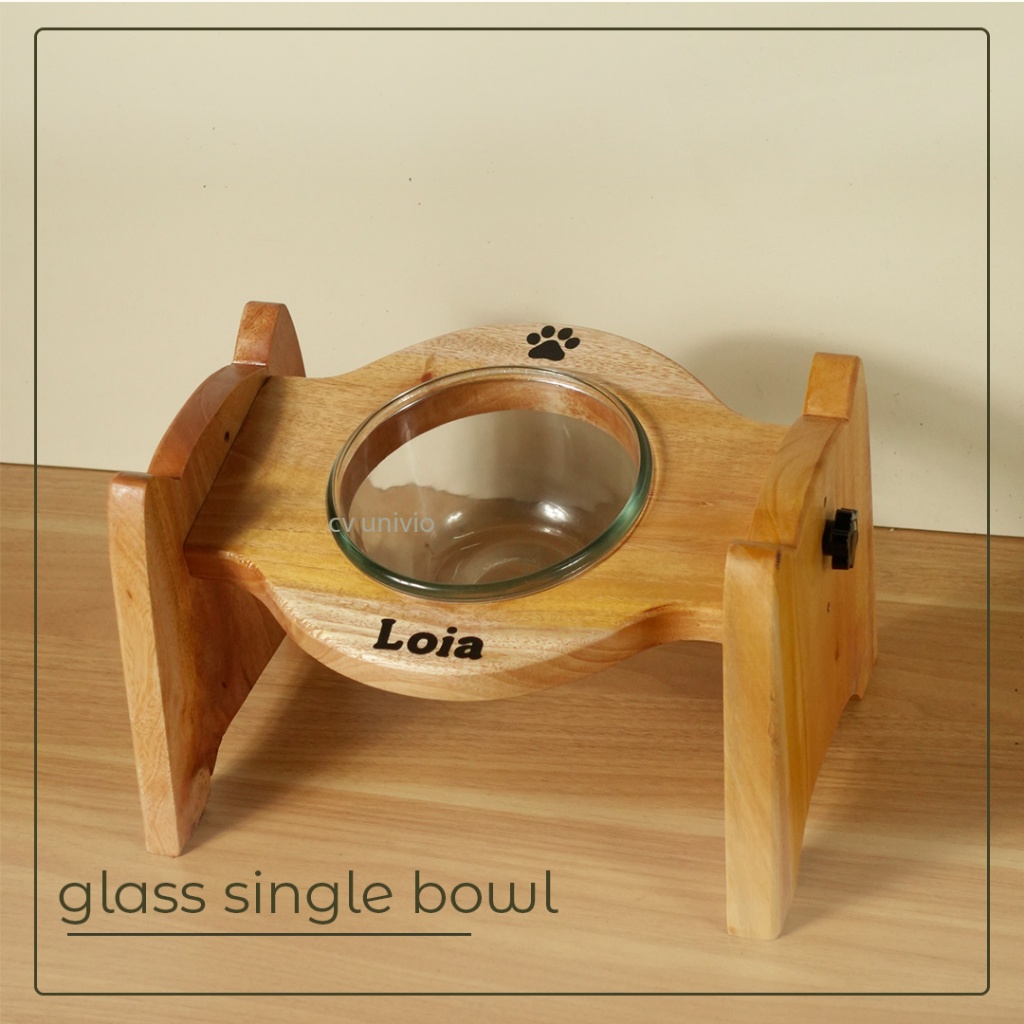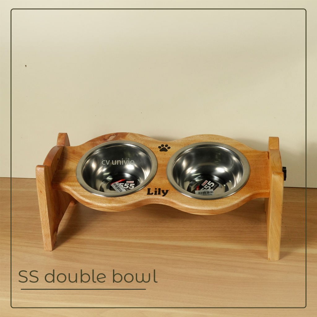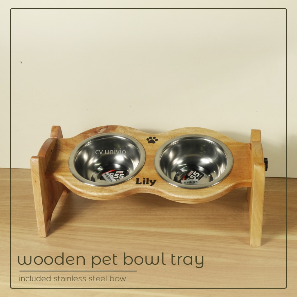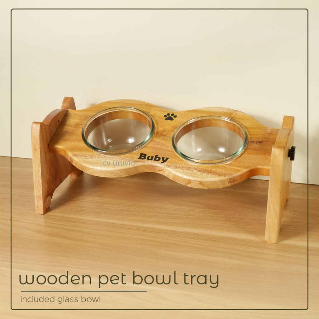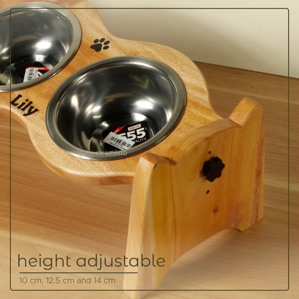 Adjustable Pet Bowl Stand Wood Mangkuk Tempat Makan Anabul Anjing dan Kucing Estetik Kayu Miring - Cat Face Style