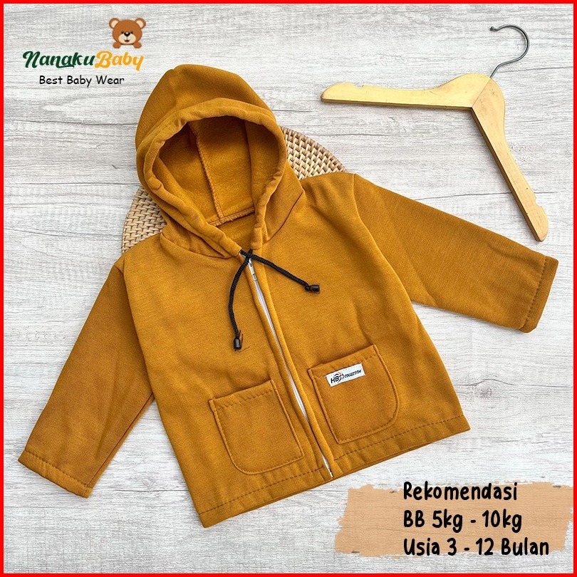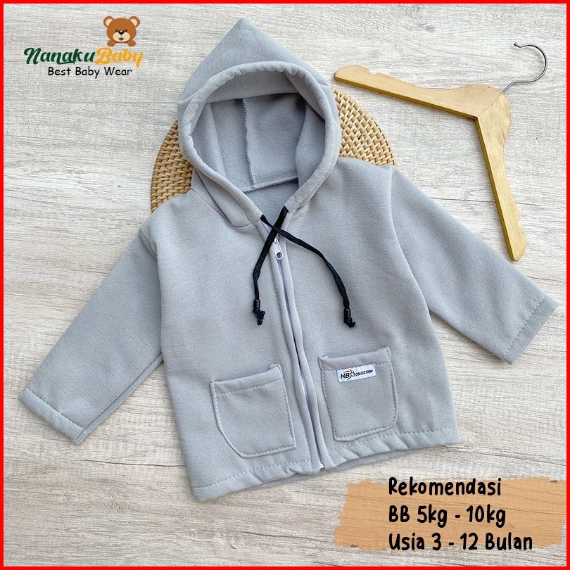 Nanaku Baby - Jaket Bayi Hoodie Polos Saku Depan Bahan Katun Fleece Usia 3-15 Bulan