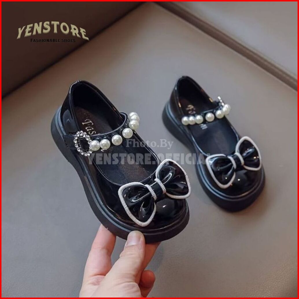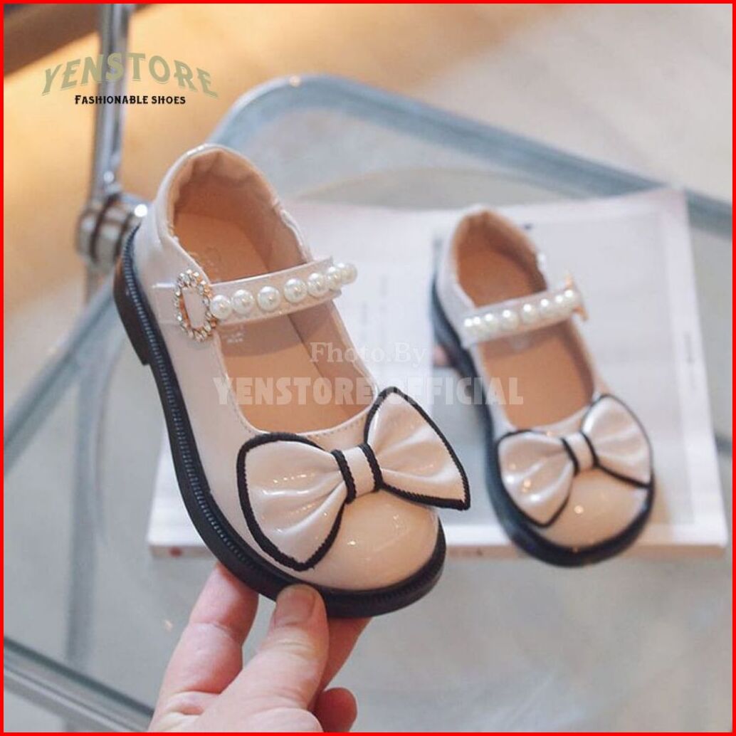 Sepatu Pesta Anak Perempuan Motif Pita Mutiara