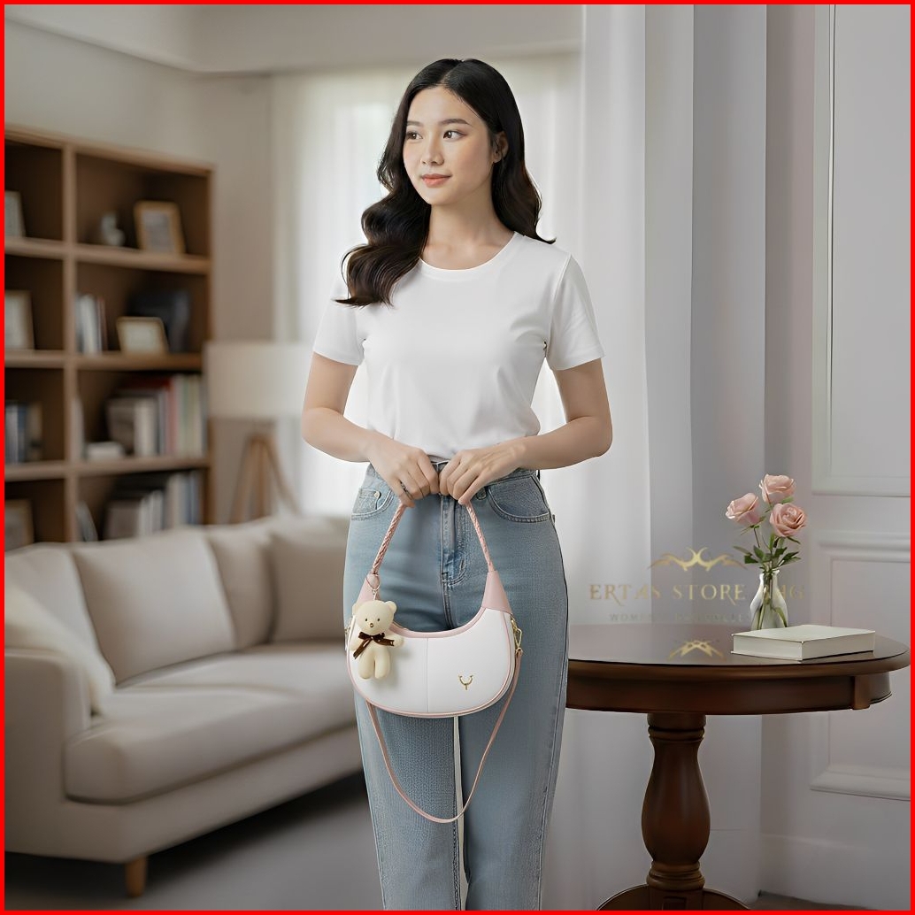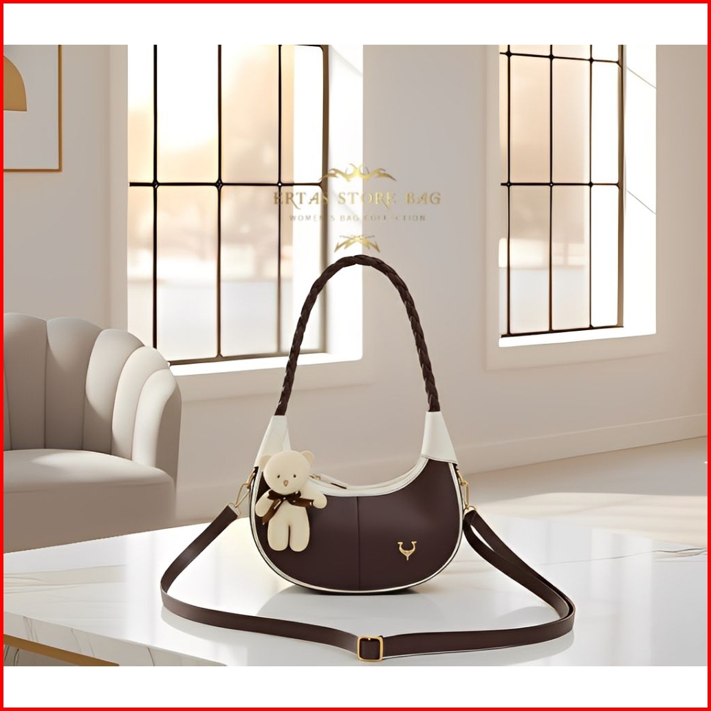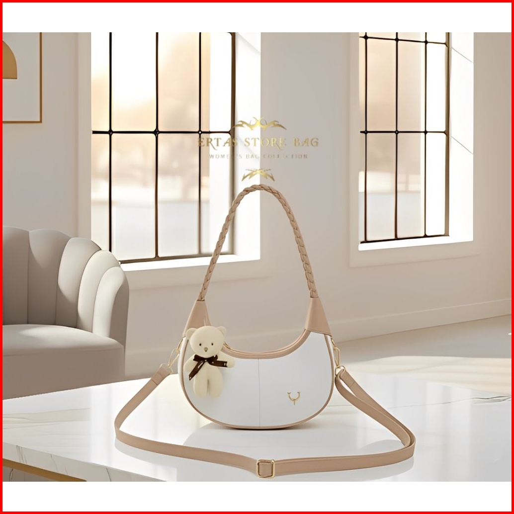 Tas Selempang Wanita Nadine Tas Cw Fashion Korea Dengan Tali Anyam Dan Bonus Gantungan Boneka
