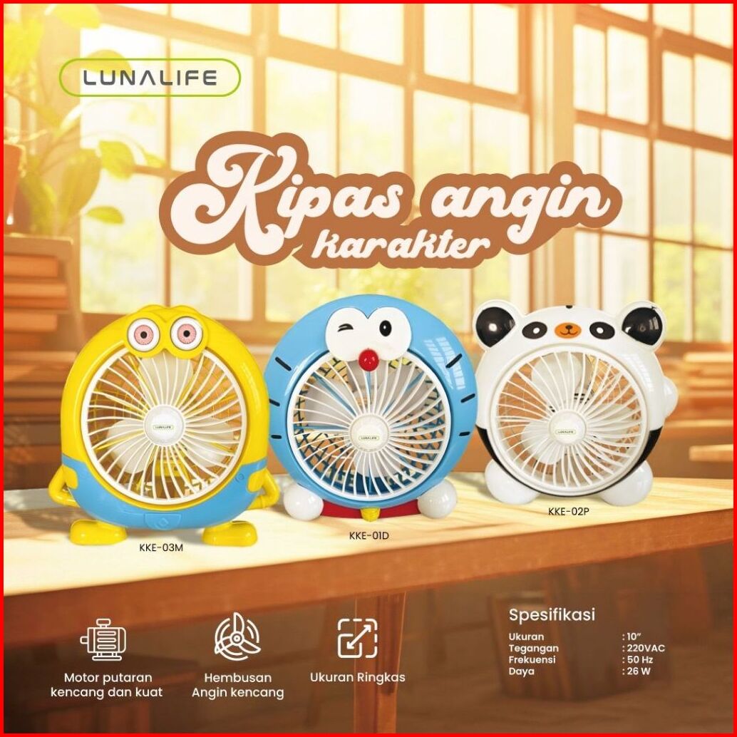 Lunalife Kipas Angin Karakter 10 Inch Kipas Meja Listrik Portable Table Fan Desk Fan Hembusan Angin Kencang