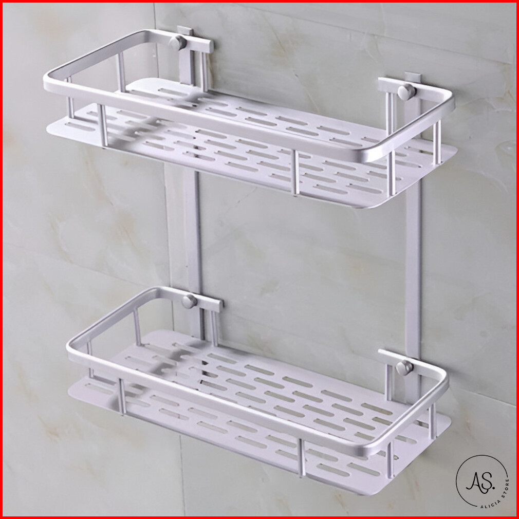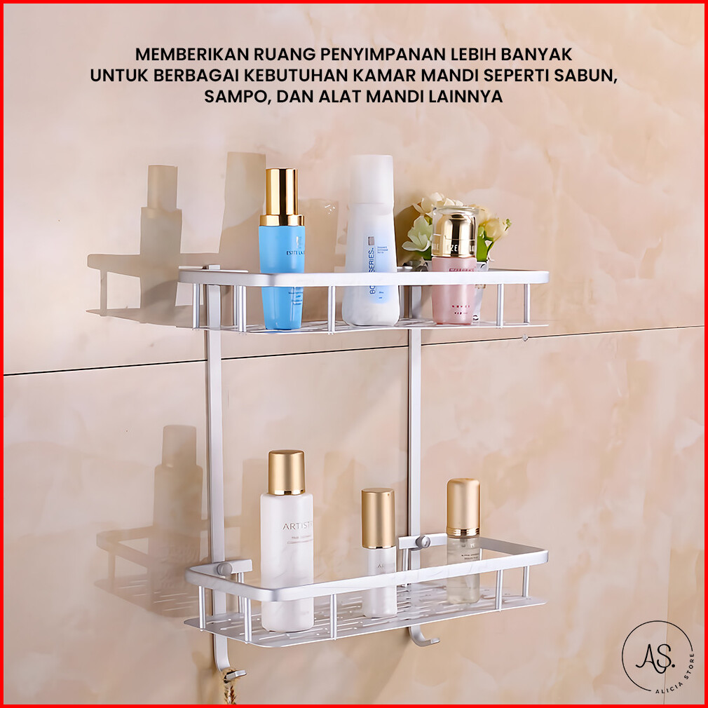 As Rak Dinding Kamar Mandi Aluminium 2 Tingkat Serbaguna