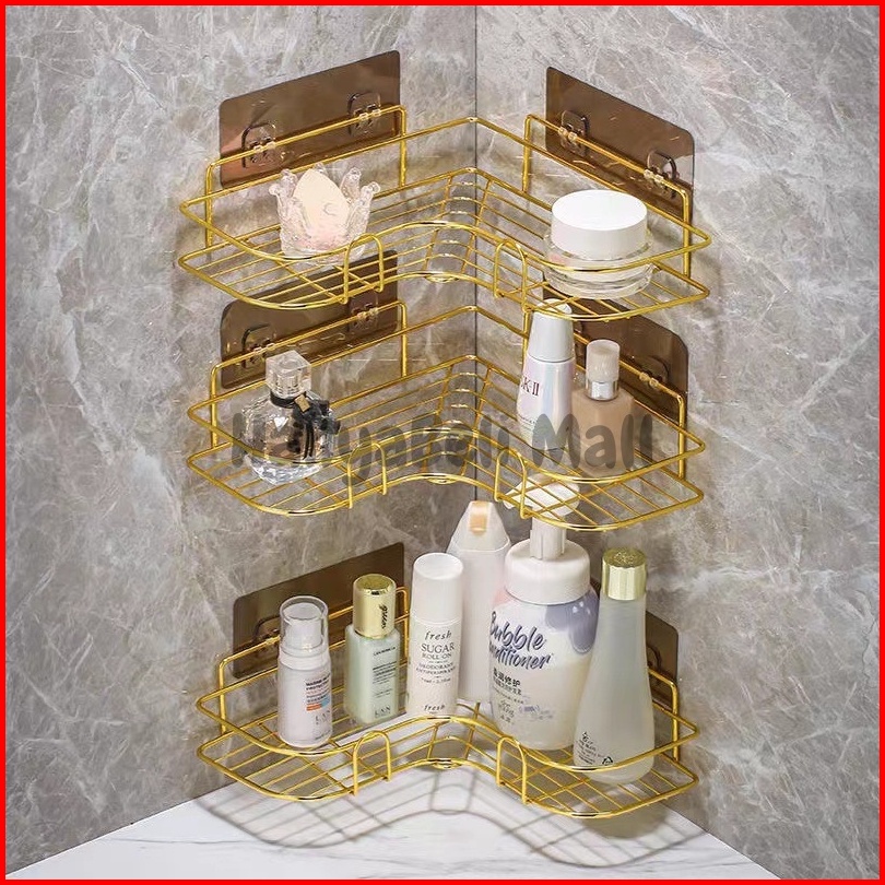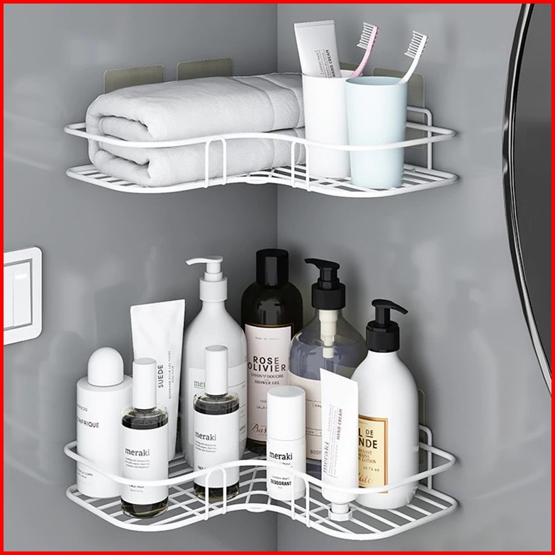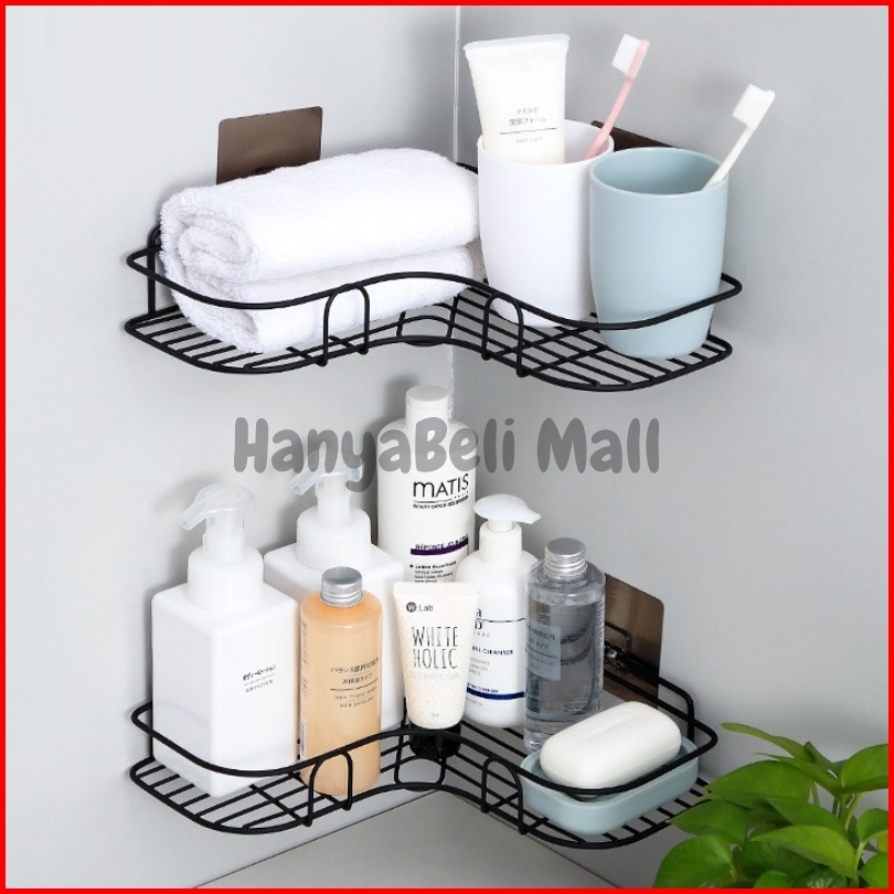 Hbm Rak Sudut Kamar Mandi Tempel Dinding Keramik Rak Dapur Besi Serbaguna Tanpa Paku