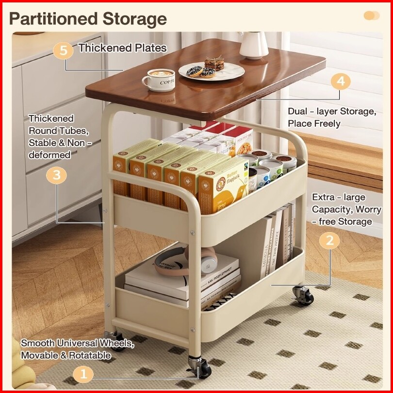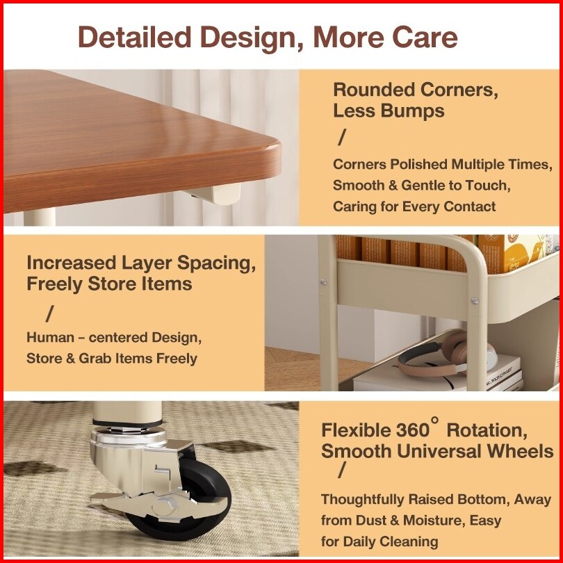 Rak Troli Susun 3 Tingkat Dengan Roda - Rak Penyimpanan Dorong Untuk Dapur Kamar Mandi Material Besi Tahan Karat Roda 36