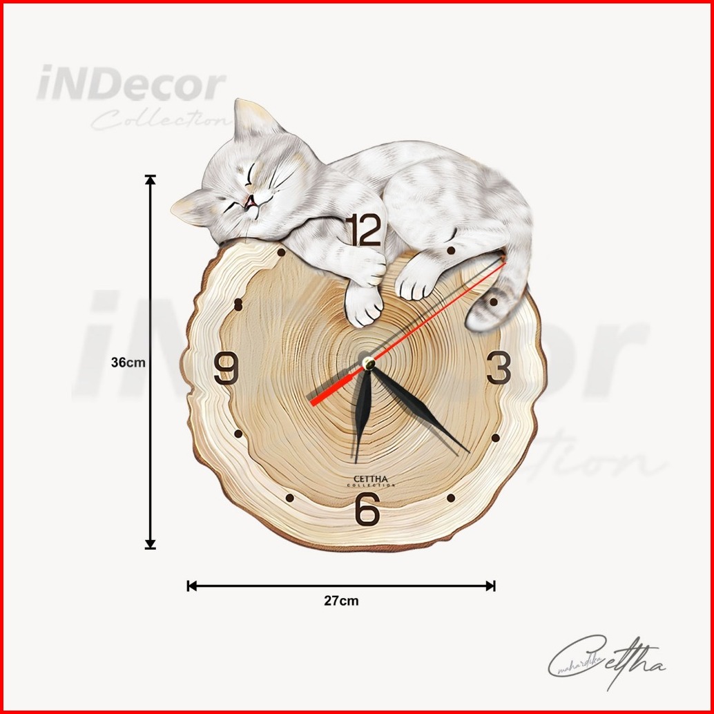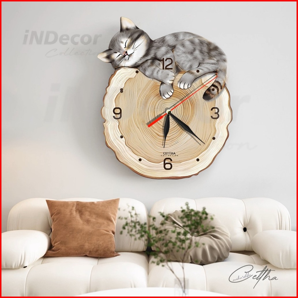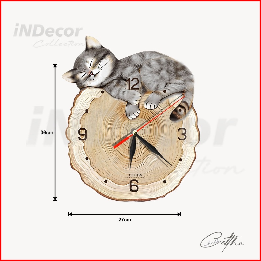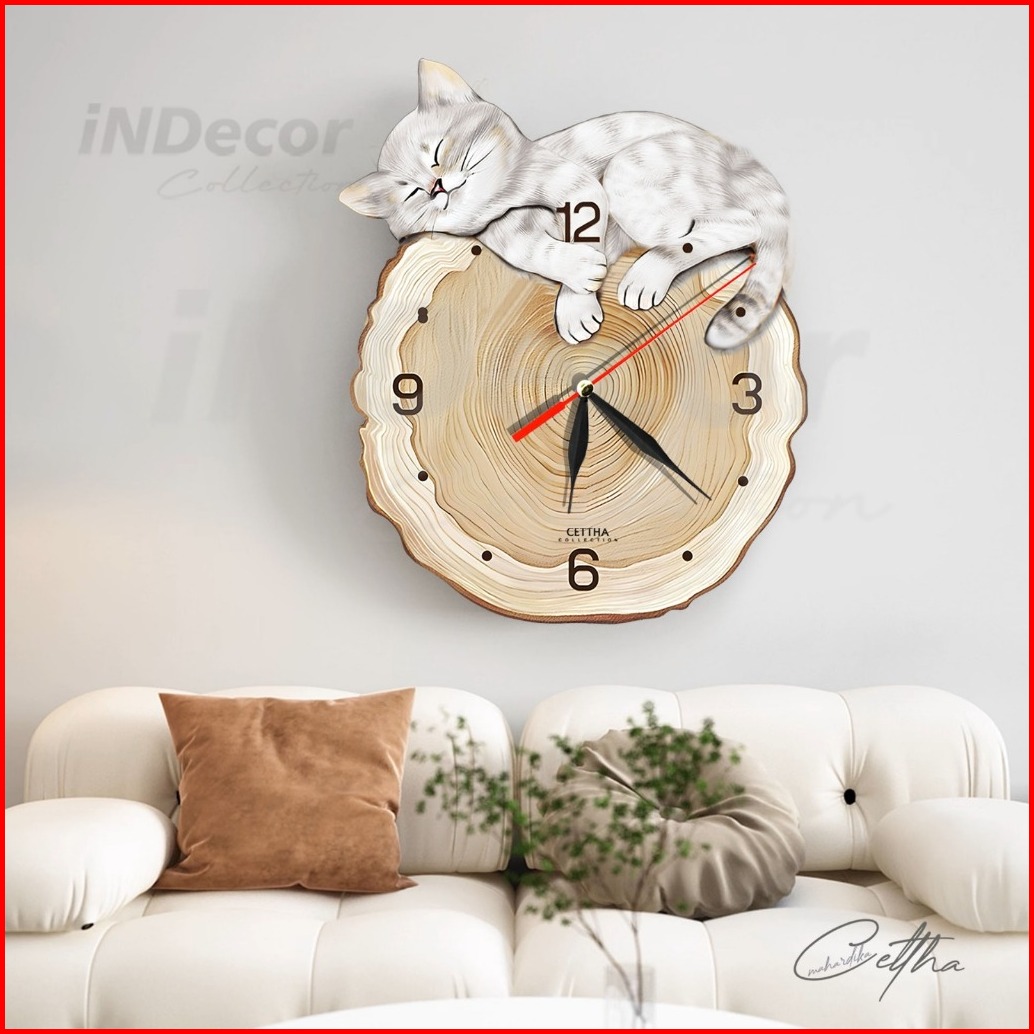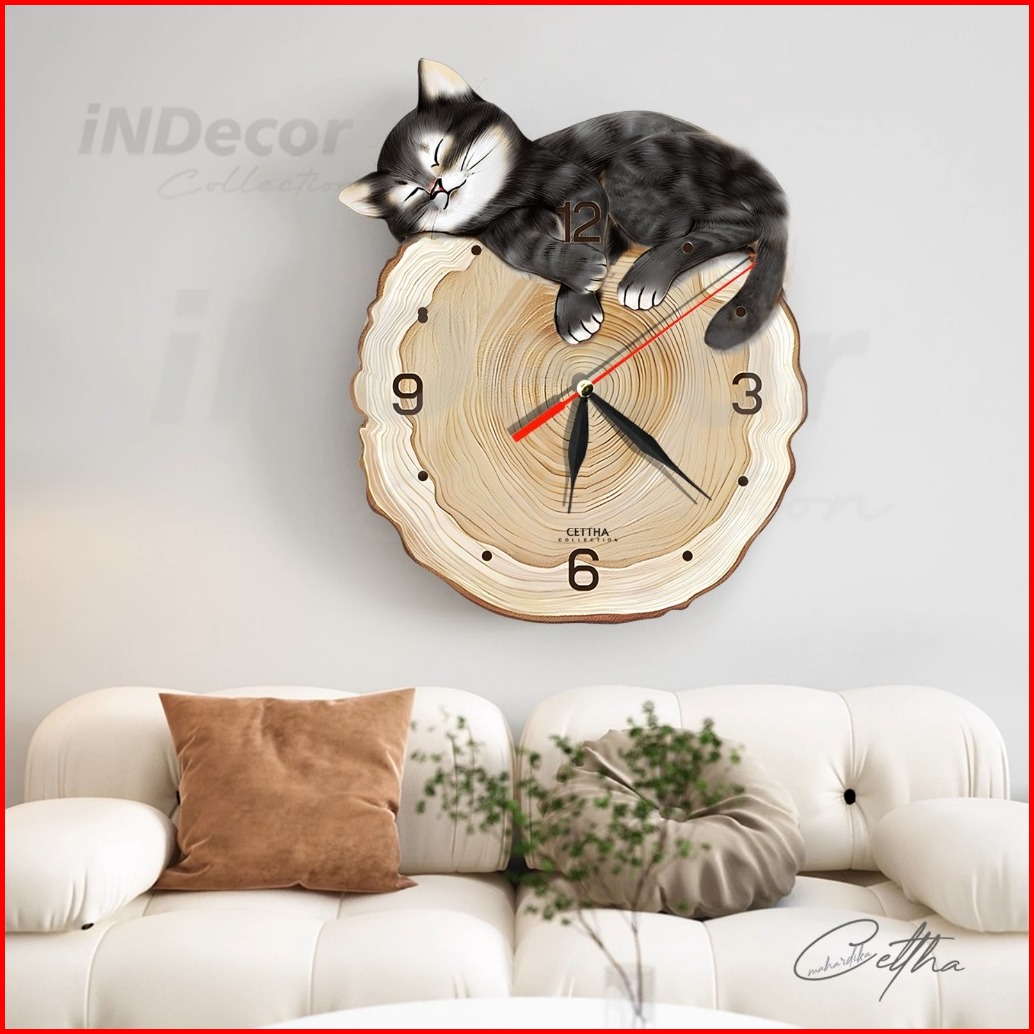 One Dekor - Jam Dinding Aesthetic Karakter Kucing Hitams