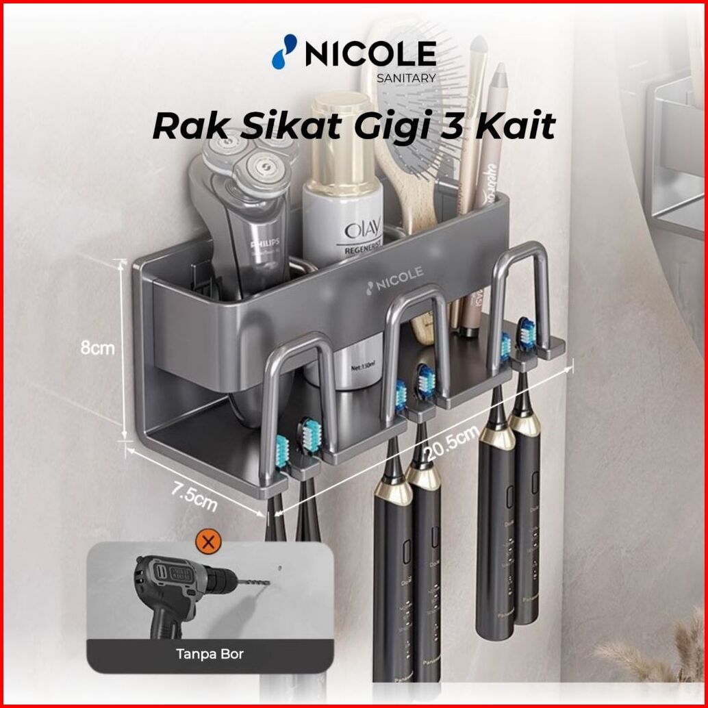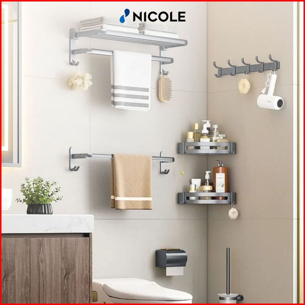 Nicole Set Organizer Rak Handuk Kamar Mandi Aluminium Estetik Gantungan Toilet Anti Bor Tahan Karat