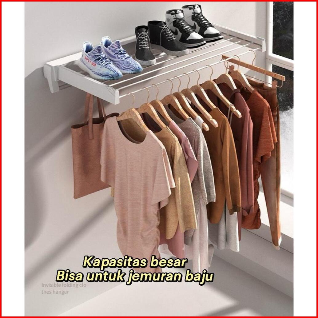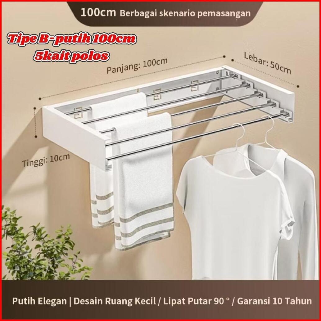 Rak Handuk 7 Baris Plus Gantungan Baju Ukuran 80cm-100cm.jemuran Baju Jemuran Dinding Lipat